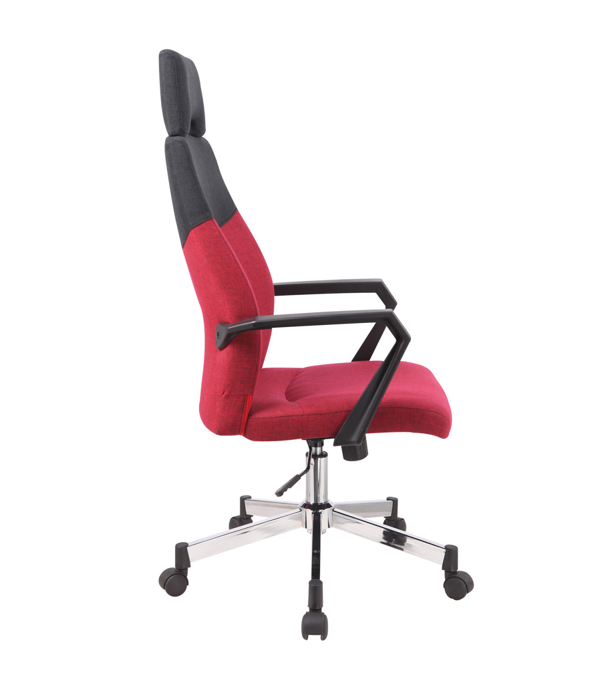 Рабочий стул DOMINIC красный/черный. Материал покрытия: сиденье и спинка: полиэстер, цвет: красный-чёрный. Цвет корпуса: хромированный. Механизм и настройки: механизм качели, высота сидения регулируется с помощью газового амортизатора. Подлокотники: материал: пластик. Крестовина: стальная крестовина, цвет: хромированный. Колеса: резиновые колеса, диаметр штифта: 11мм. Размеры: высота 113,5-121см, высота сидения 44,5-52см, глубина сидения 45см, ширина сидения 48,5см, высота спинки 73,5см. Предельный вес 120кг.