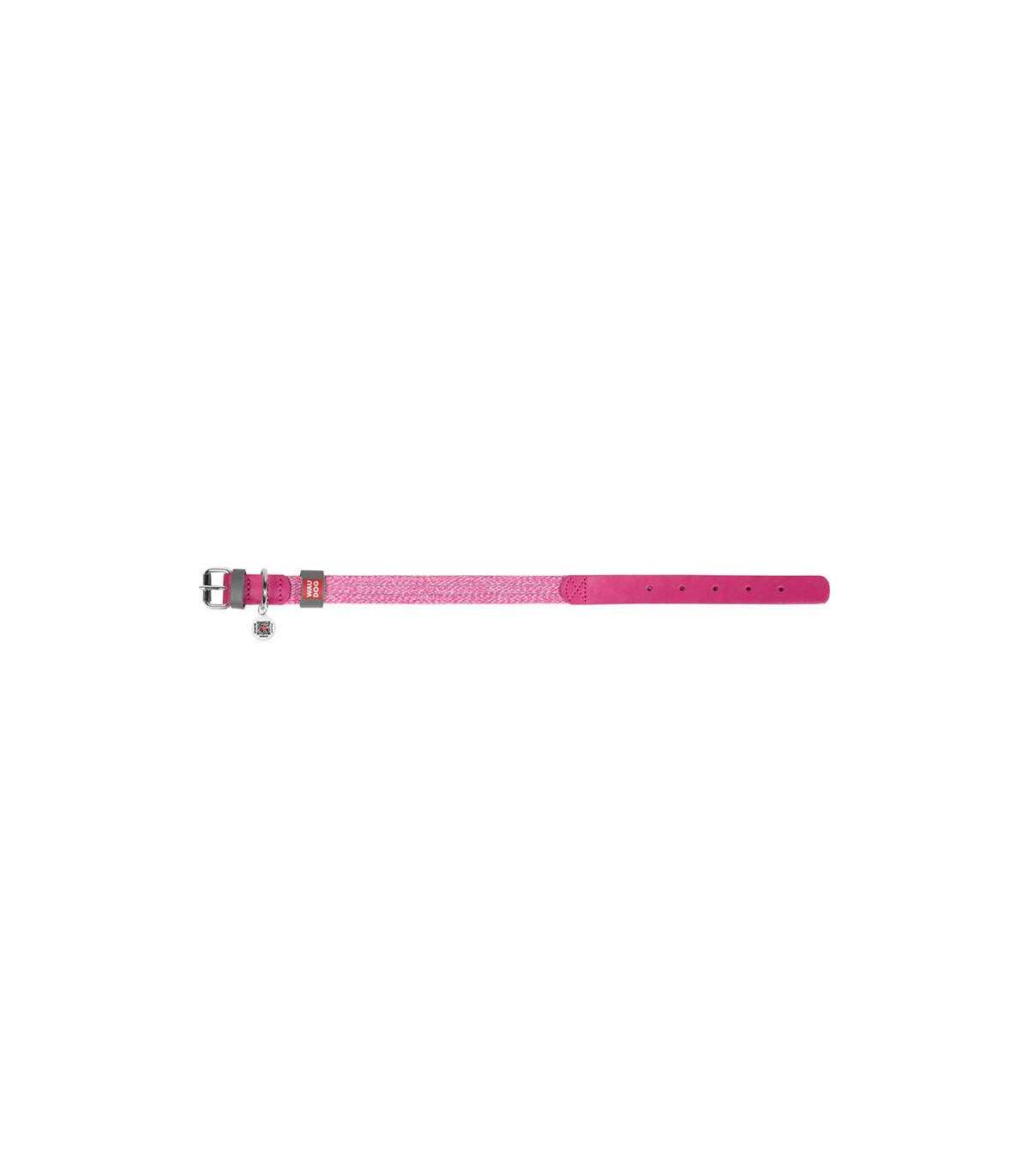 Dog collar made of natural leather and recycled cotton Waudog Classic size M, pink.