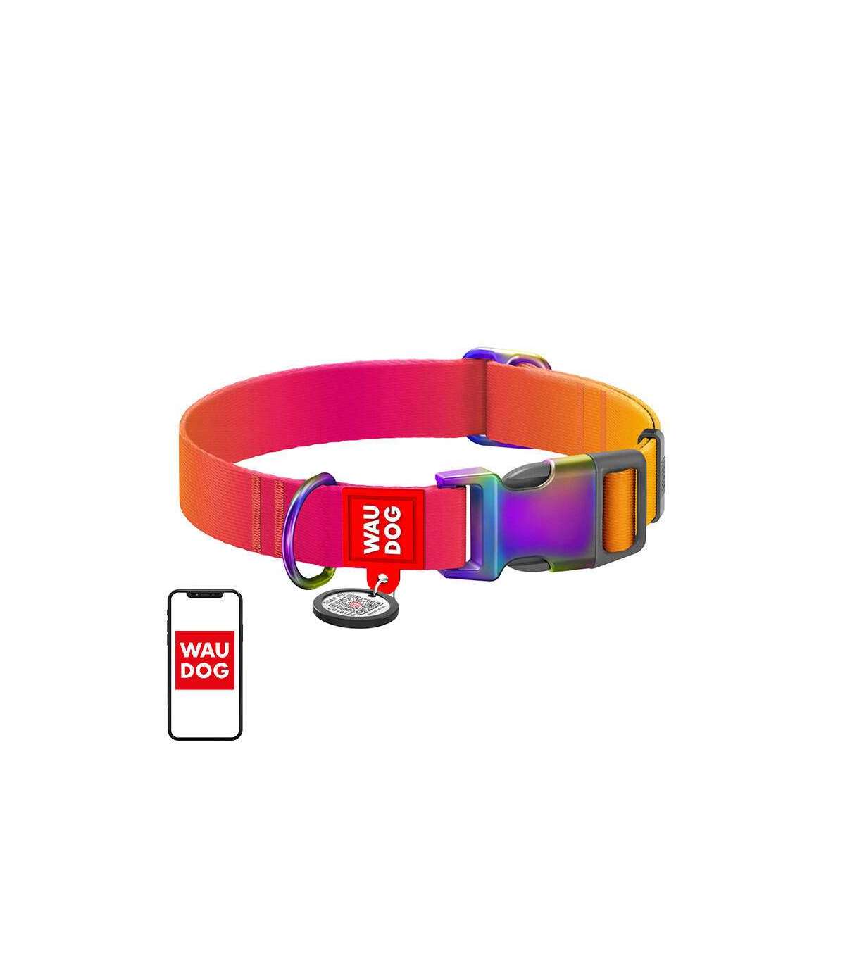 Nylon collar with QR code for dog Waudog gradient size L (orange).