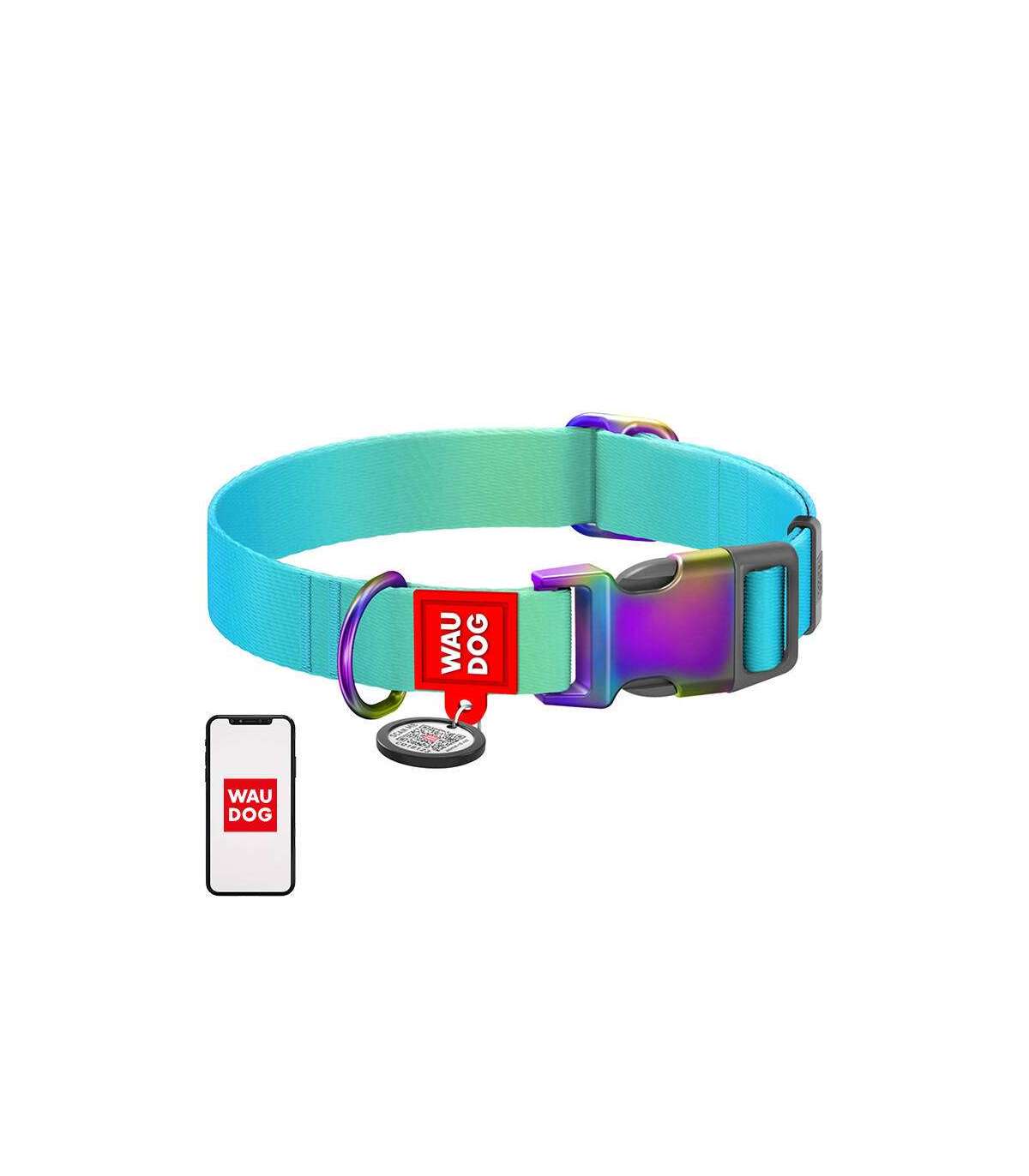 Nylon dog collar with QR code WAUDOG 15 mm wide, 25-35 cm long (blue).