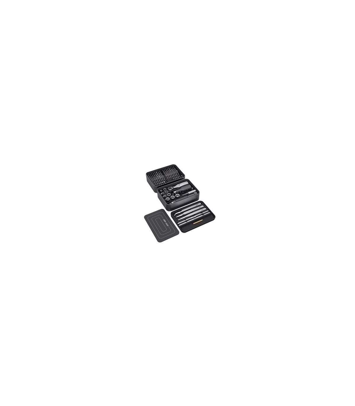 Thanks to the compact structure, the housing of the set has been divided into 3 modules, which after folding create an easy to carry and store whole. You can easily transport such a set in your car, it will fit in your backpack or in a bigger toolbox. The casing is made of durable ABS material and covered with metallic paint for better aesthetics.