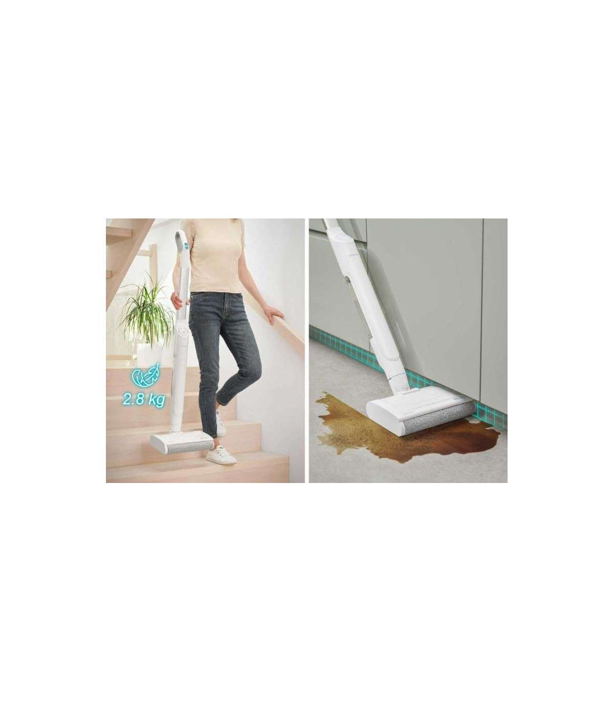 Perfectly clean and shiny floors with no effort? The Sencor SVW3500WH Aquino floor washer will remove dirt from all types of hard floors, and thanks to its rotating brush, which is continuously soaked in clean water, your floor will shine. The electric mop easily handles tight spaces near walls or under furniture, and its lightweight design makes it easy and comfortable to use. With the Self-Cleaning function, the brush automatically cleans itself after use, so bacteria and unpleasant odors don’t stand a chance. Plus, you don’t have to rush with cleaning—the battery lasts up to 40 minutes.