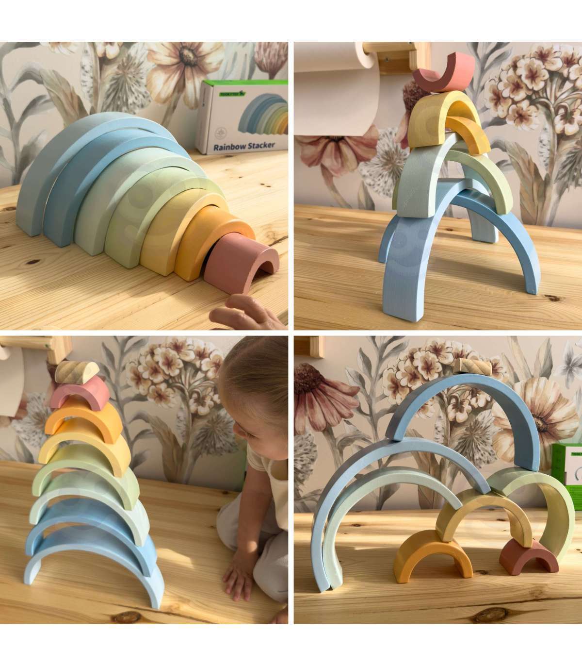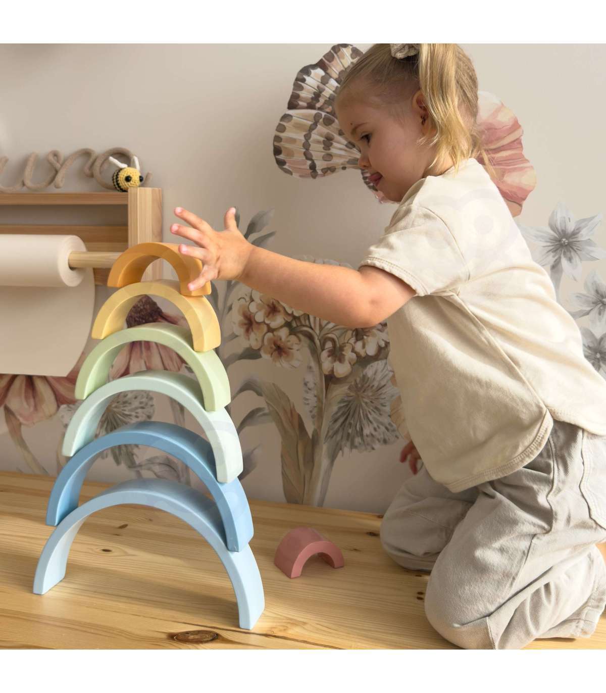Pastelowa drewniana tęcza TOOKY TOY – kreatywna zabawa i nauka w jednym!