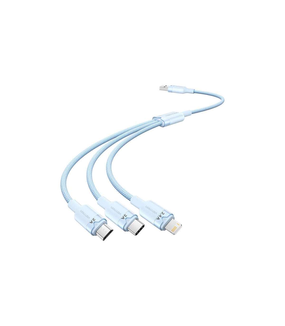 USB 2.0 A to 3in1 3A cable Vention CTPLG 1.5M (blue)