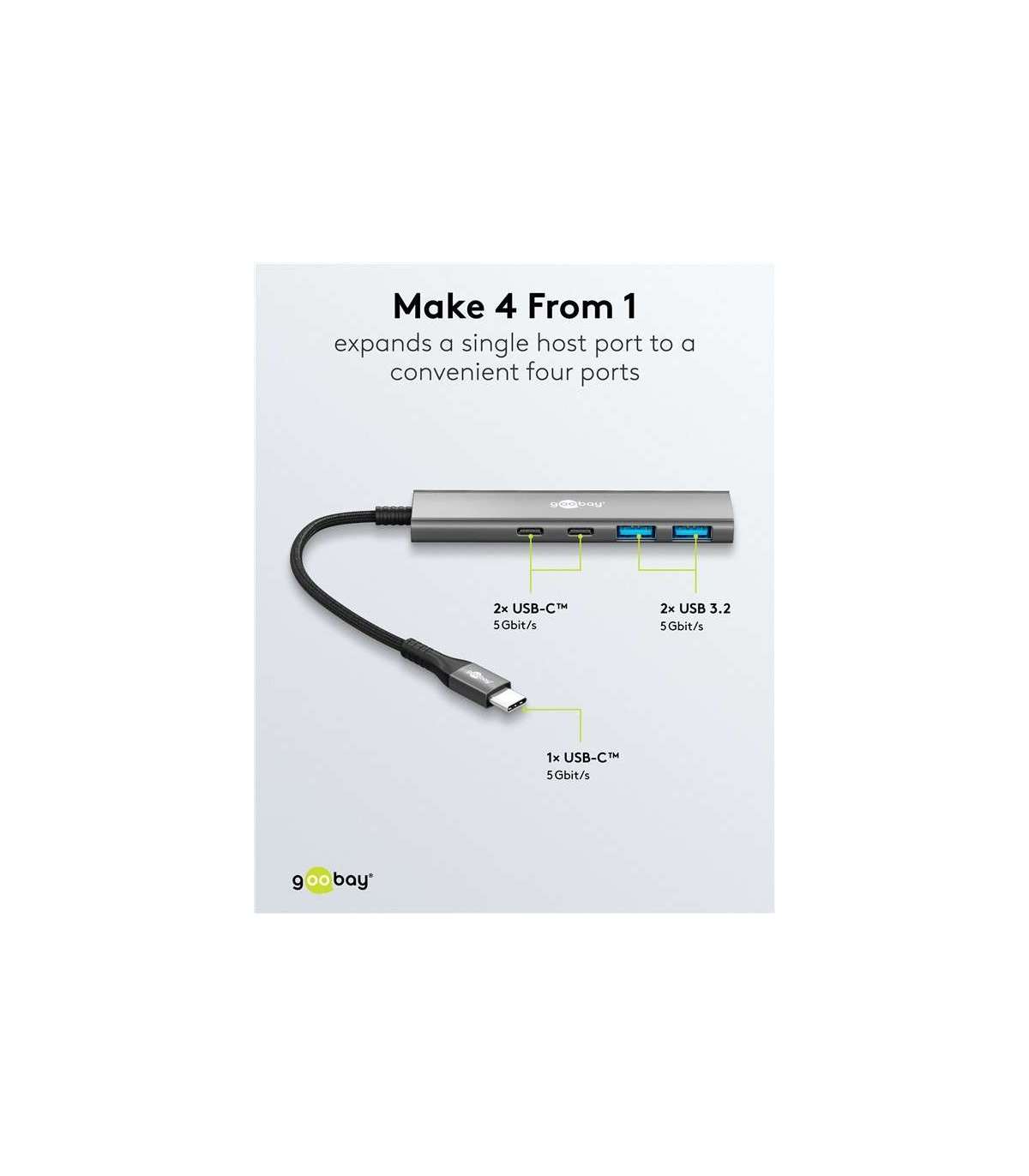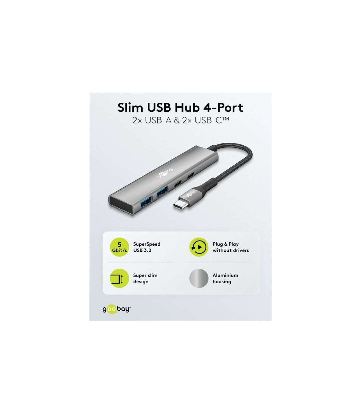 Goobay Slim 4-Port USB Hub, USB-C to USB-C/USB-A, 5 Gbit/s | 76563