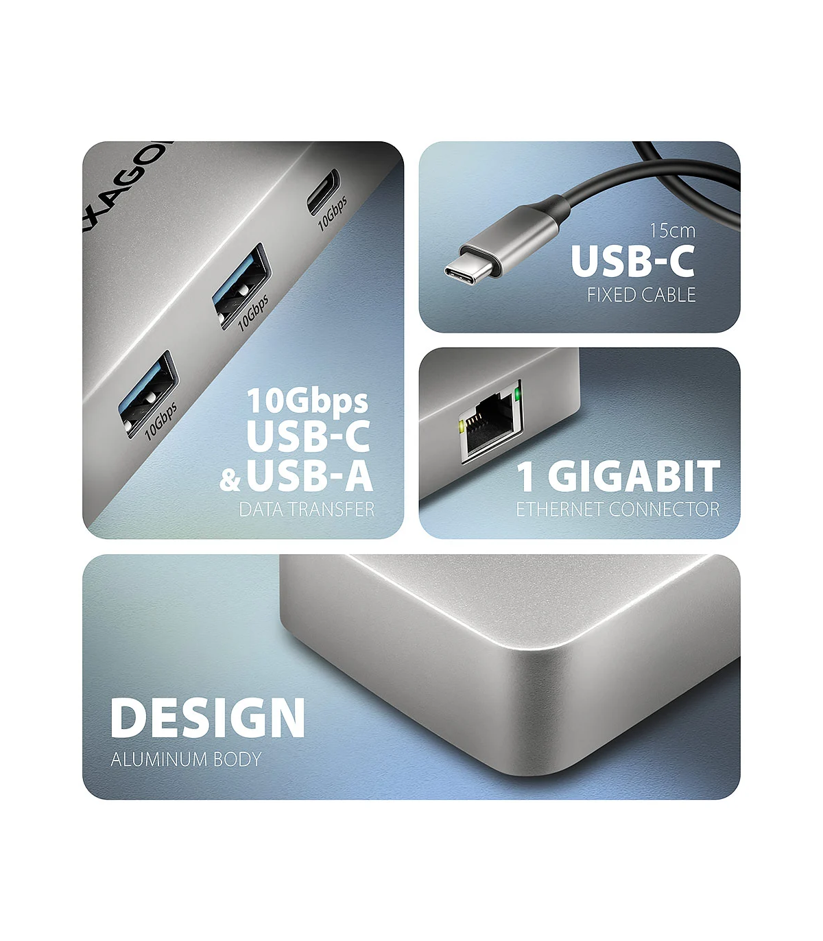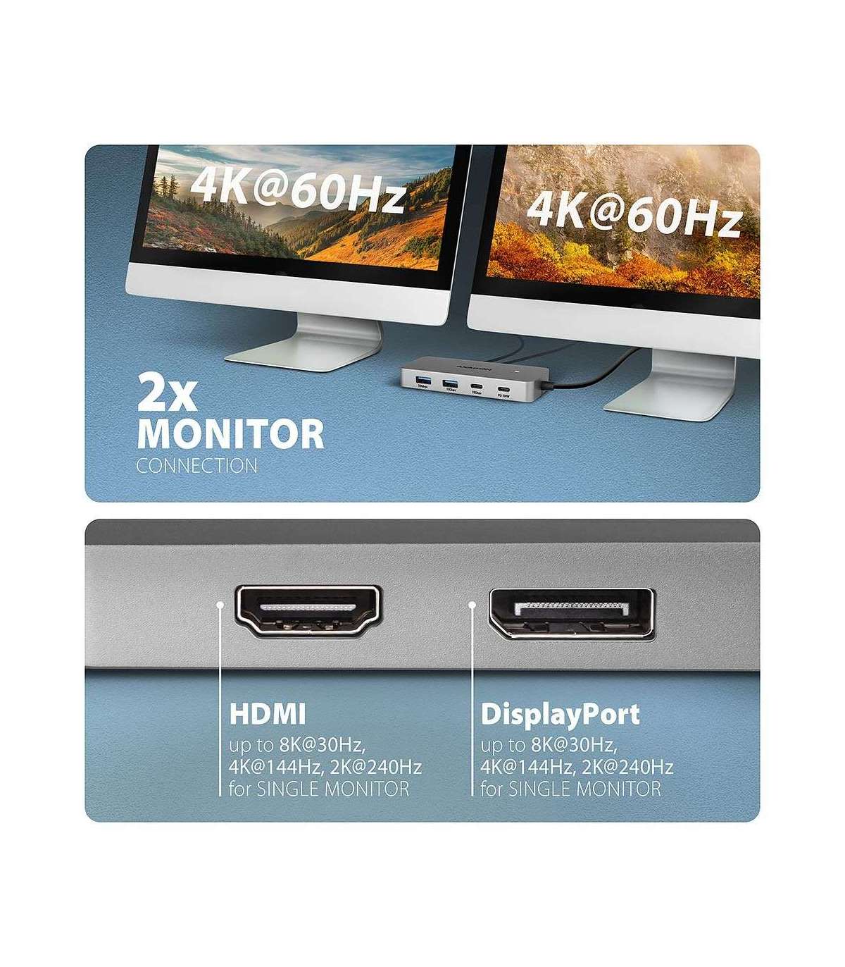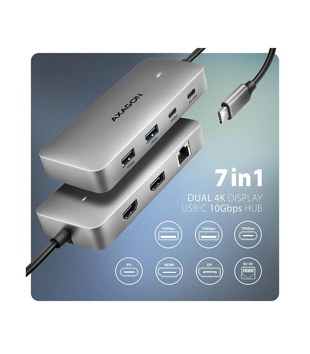 AXAGON USB-C 10Gbps DUAL 4K DISPLAY 7in1 hub | HMC-CUB83X2