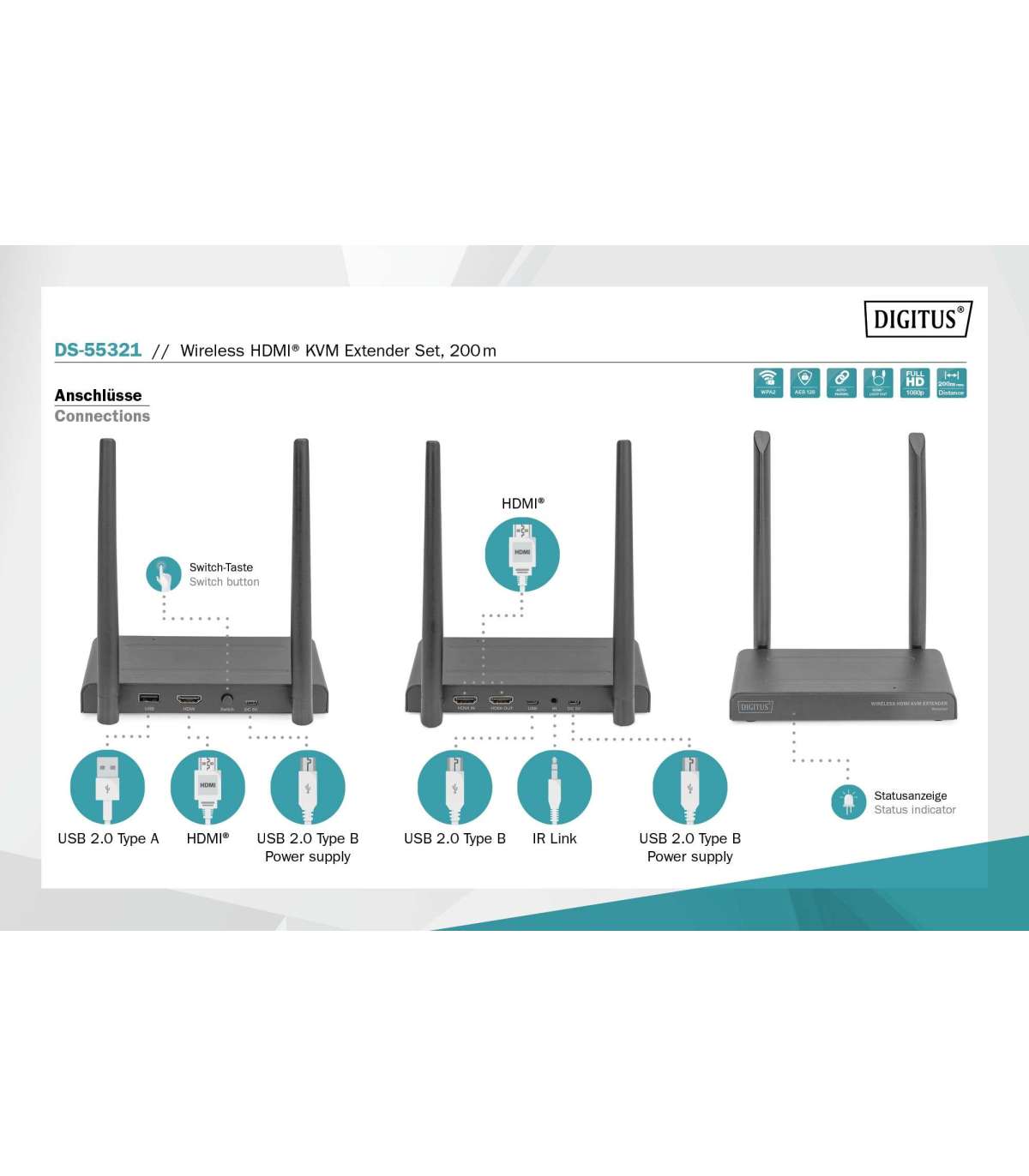 Digitus | Wireless HDMI KVM Extender Set, 200 m | DS-55321