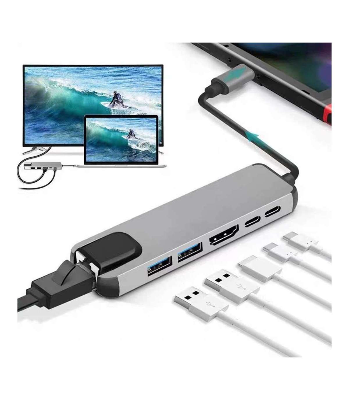 Gembird A-CM-COMBO5-06 USB Type-C 6-in-1 multi-port adapter (AF and Type-C Hub + HDMI + PD+LAN)