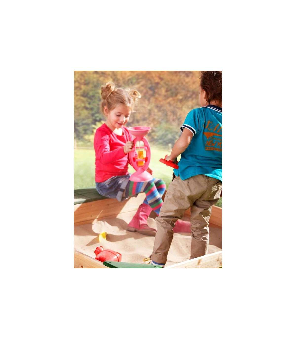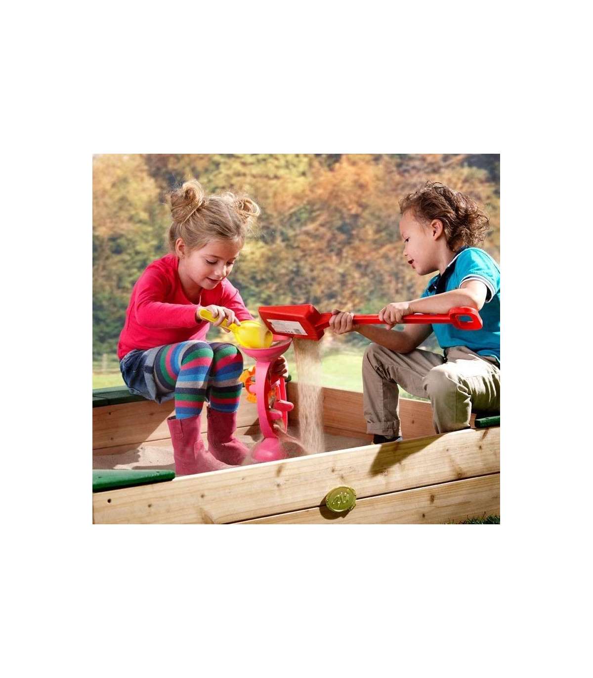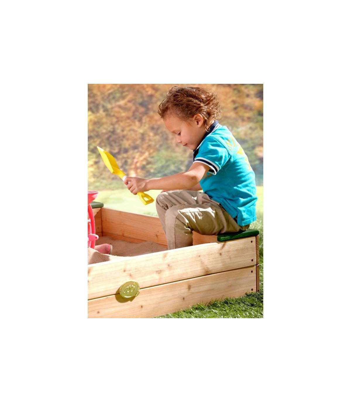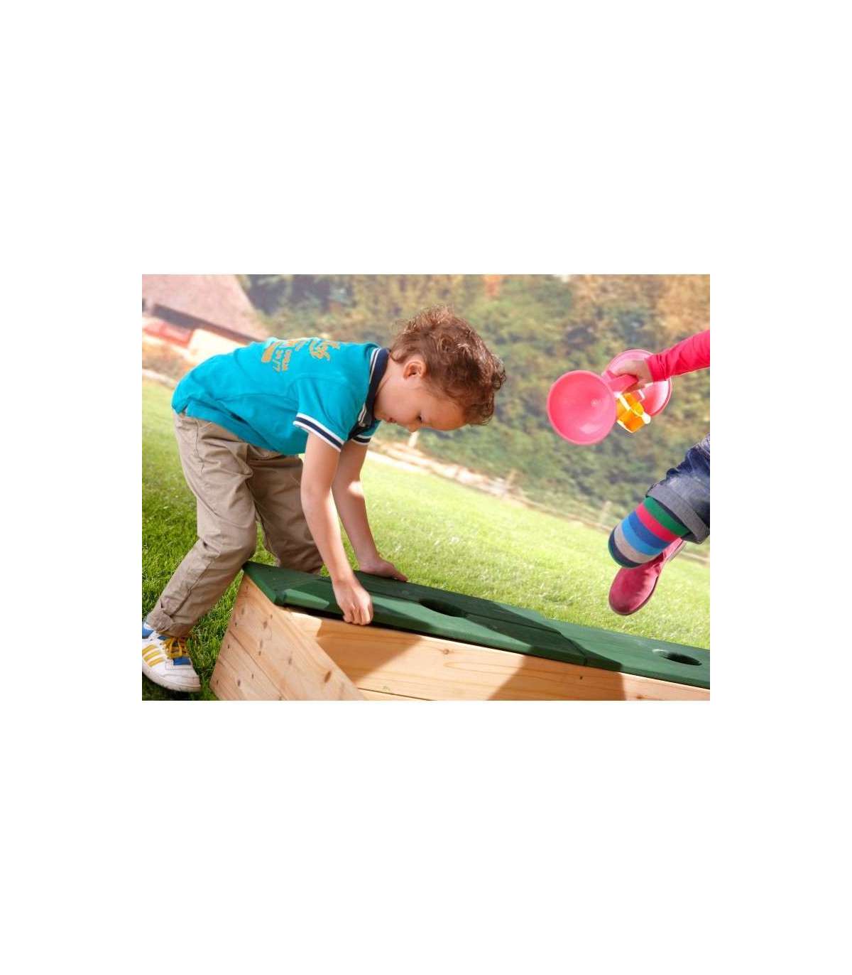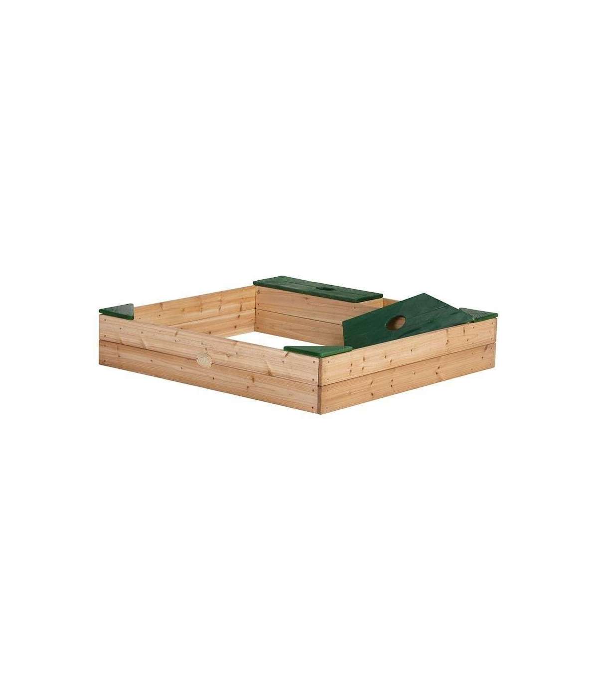 Красивая и универсальная деревянная песочница AXI — отличное дополнение к домашней игровой площадке. Песочница оснащена отсеком для аксессуаров, в котором дети могут хранить свои лопатки и ведерки. Отсек имеет деревянные крышки, которые выполняют функцию скамейки. На каждом углу есть удобные сиденья. В комплект включён тент, который служит крышкой, а также специальное покрытие против сорняков. В песочницу помещается даже 350kg песка! Вся конструкция легко собирается.