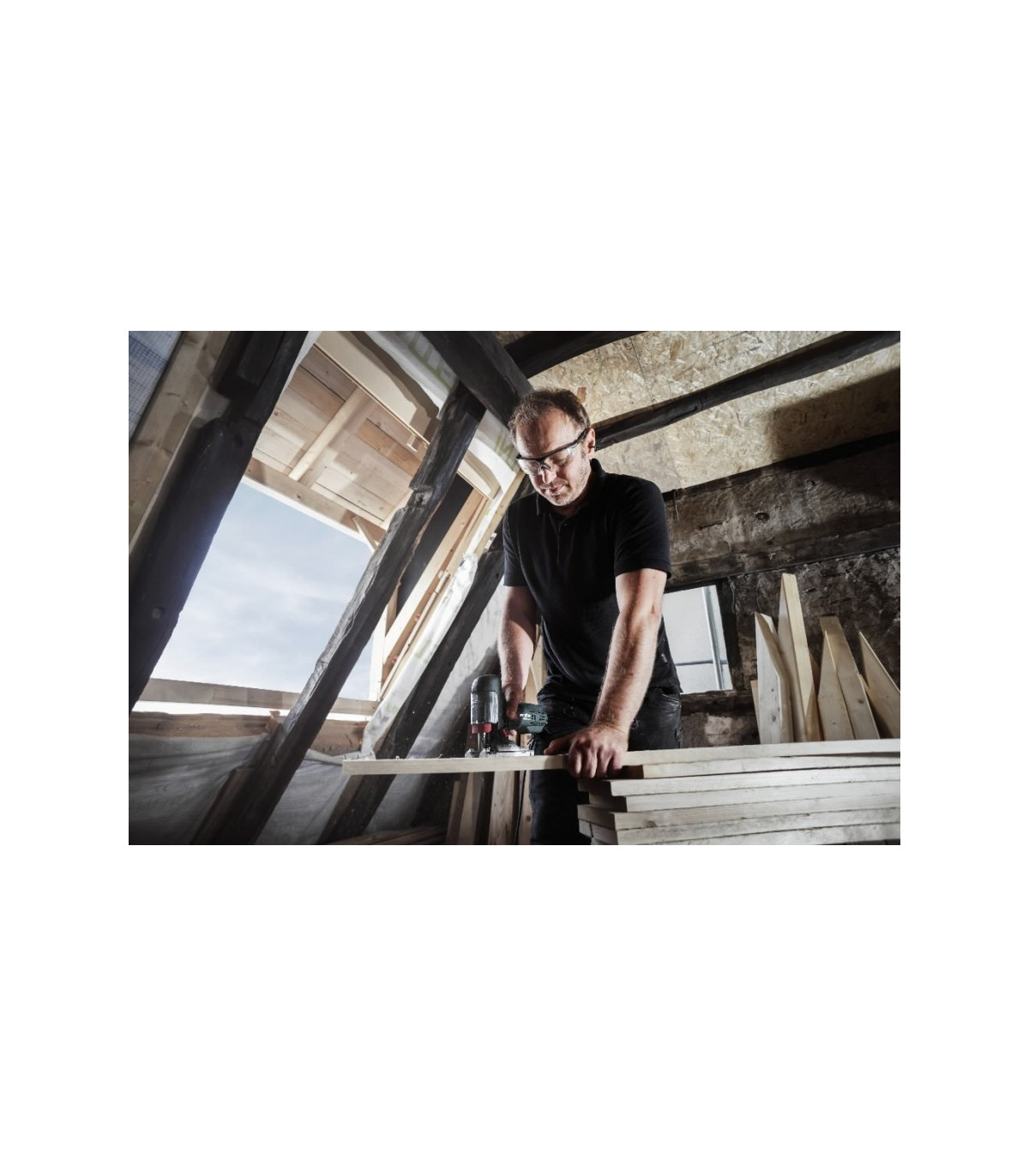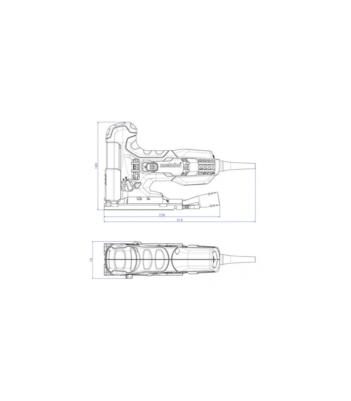 Suurim materjali paksus - puit: 100 mm - mitteraudmetallid: 25 mm - lehtteras: 10 mm Pöördulatus alates / kuni: - 45 °/+ 45 ° Pendelliikumise astmed: 4 Saetera käik: 22 mm Töökiirus tühikäigul: 1.000 - 3.100 /min Nominaalne sisendvõimsus: 710 W Väljundvõimsus: 470 W Kaal (ilma voolujuhtmeta): 2 kg Eriti jõuline tikksaag VTC elektroonikaga kiirete, kuni 100 mm sügavate lõigete tegemiseks Puhumisseadis lõikekohale vaba vaate tagamiseks Sale korpus tagab hea haarde ning mugava käsitlemise Tolmuimeja ühendamise võimalus Tikksaetera võtmevaba kiirvahetus Standardvarustus Äratõmbeliitmik, kaitseklaas, materjali rebestamiskaitse, kuuskantvõti