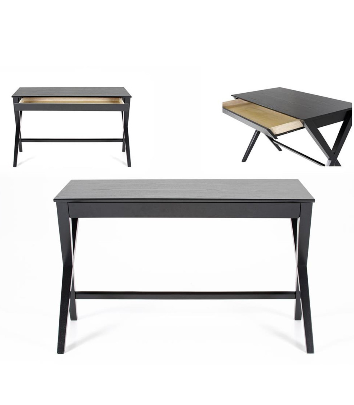 Письменный стол WRITEX 120x60xH75см, черный. Письменный стол - необходимое дополнение к любому дому, позволяющее удобнее использовать компьютер или создать практичное пространство домашнего офиса. У письменного стола один ящик. Письменный стол изготовлен из МДФ и натурального шпона дуба. Отделка: черный лак. Размеры изделия 120x60xH75см.
