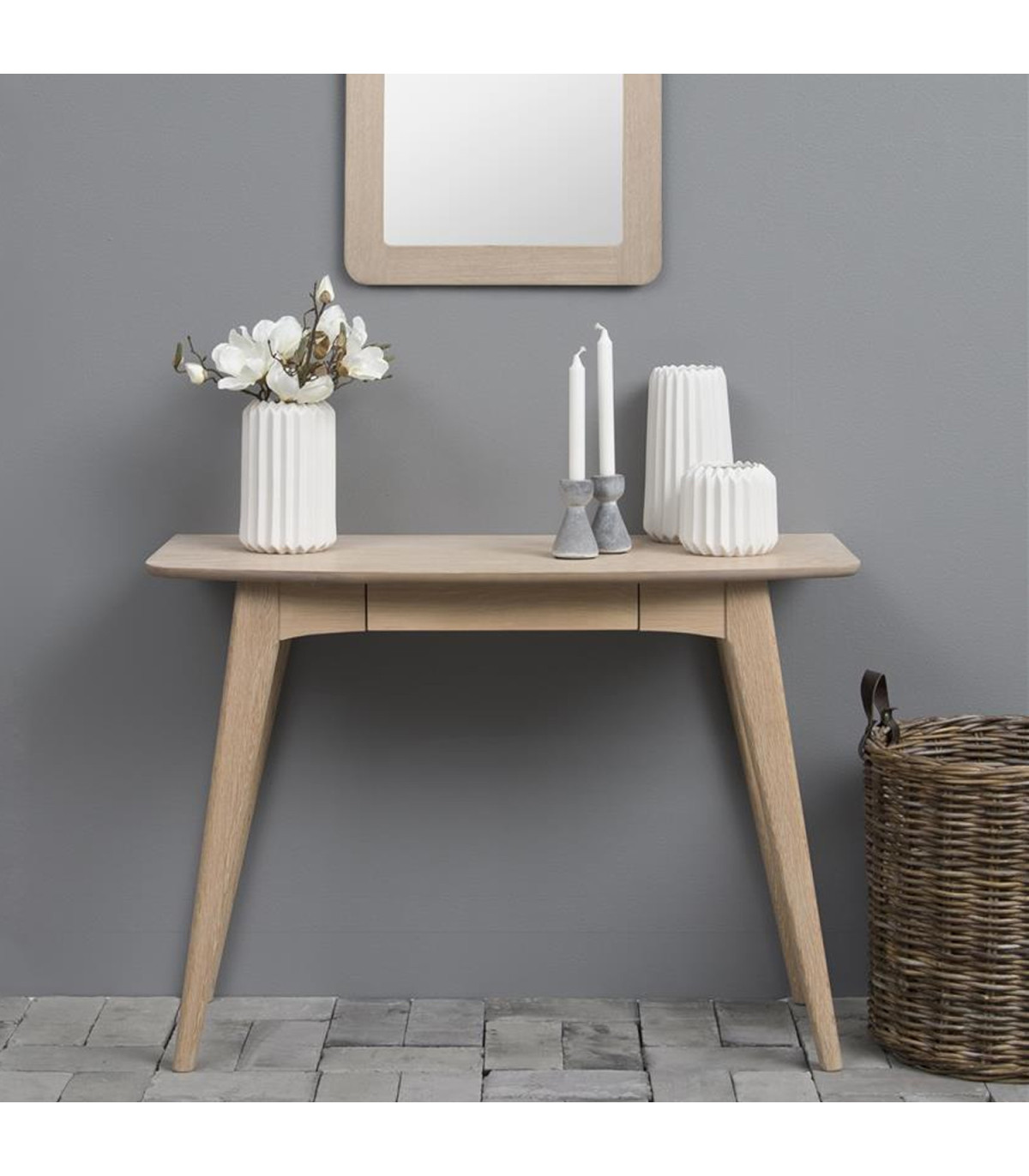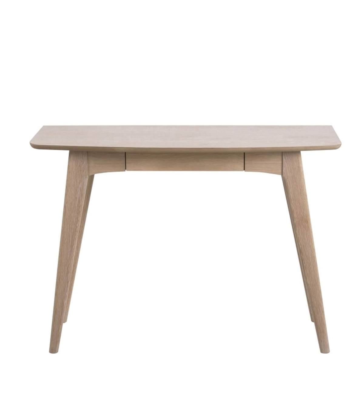 Письменный стол WOODSTOCK 105x45xH74см, дуб. Письменный стол - необходимое дополнение к любому дому, позволяющее удобнее использовать компьютер или создать практичное пространство домашнего офиса. Столы под дерево идеально подходят для домашнего интерьера, так как теплый материал и мягкие тона хорошо сочетаются с различной мебелью. У письменного стола один ящик. Столешница сделана из дуба. Финиш: масло с белыми пигментами. Размеры изделия 105x45xH74см.