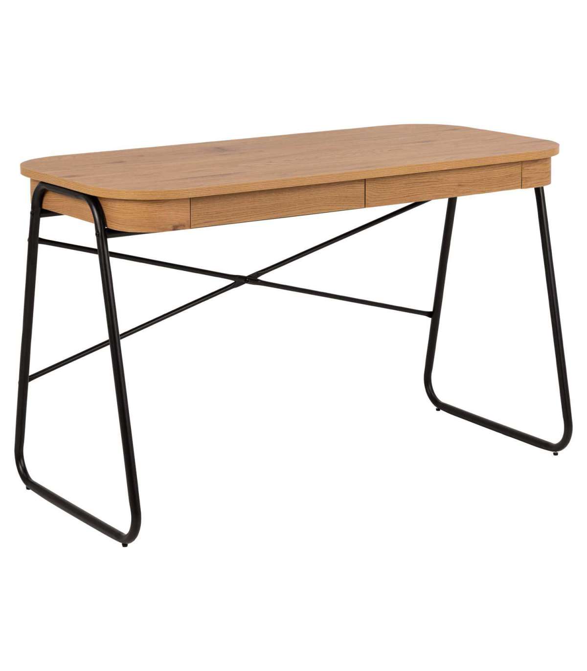 Kirjutuslaud on loodud hubase ja loomingulise kontorinurga tarbeks. Laual on metsiku tamme välimus, ümarad nurgad ja must torujas terasraam tänu millele mõjub disain kaasaegsena. Kaks sahtlit võimaldavad pabereid, märkmikke ja kirjutusvahendeid mugavalt hoiustada. Materjal: MDF. Jalad: pulbervärvitud teras. Toote mõõdud on 120x60xH75cm.