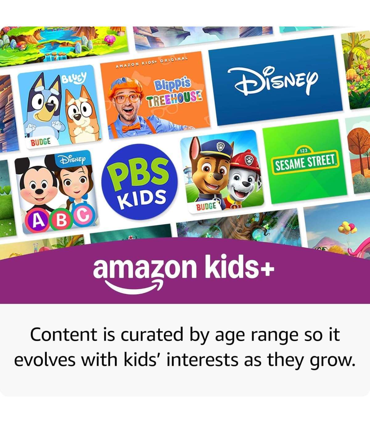 Включена годовая подписка на Amazon Kids+ — получите доступ к тысячам книг, игр и видеороликов без рекламы от Disney, LEGO, Blippi и других компаний.