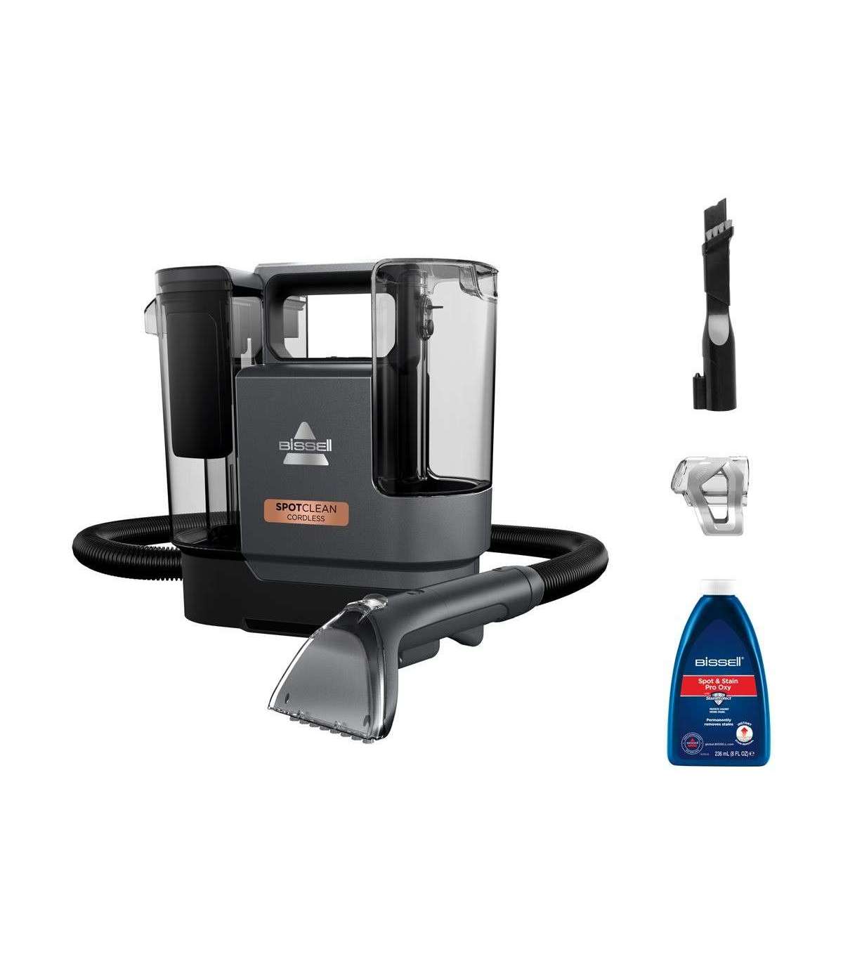 - 10cm Tough Stain Tool; 2-in-1 XL Sliding Crevice Tool; HydroRinse™ Tool; Spot & Stain Pro Oxy; User Guide & Safety