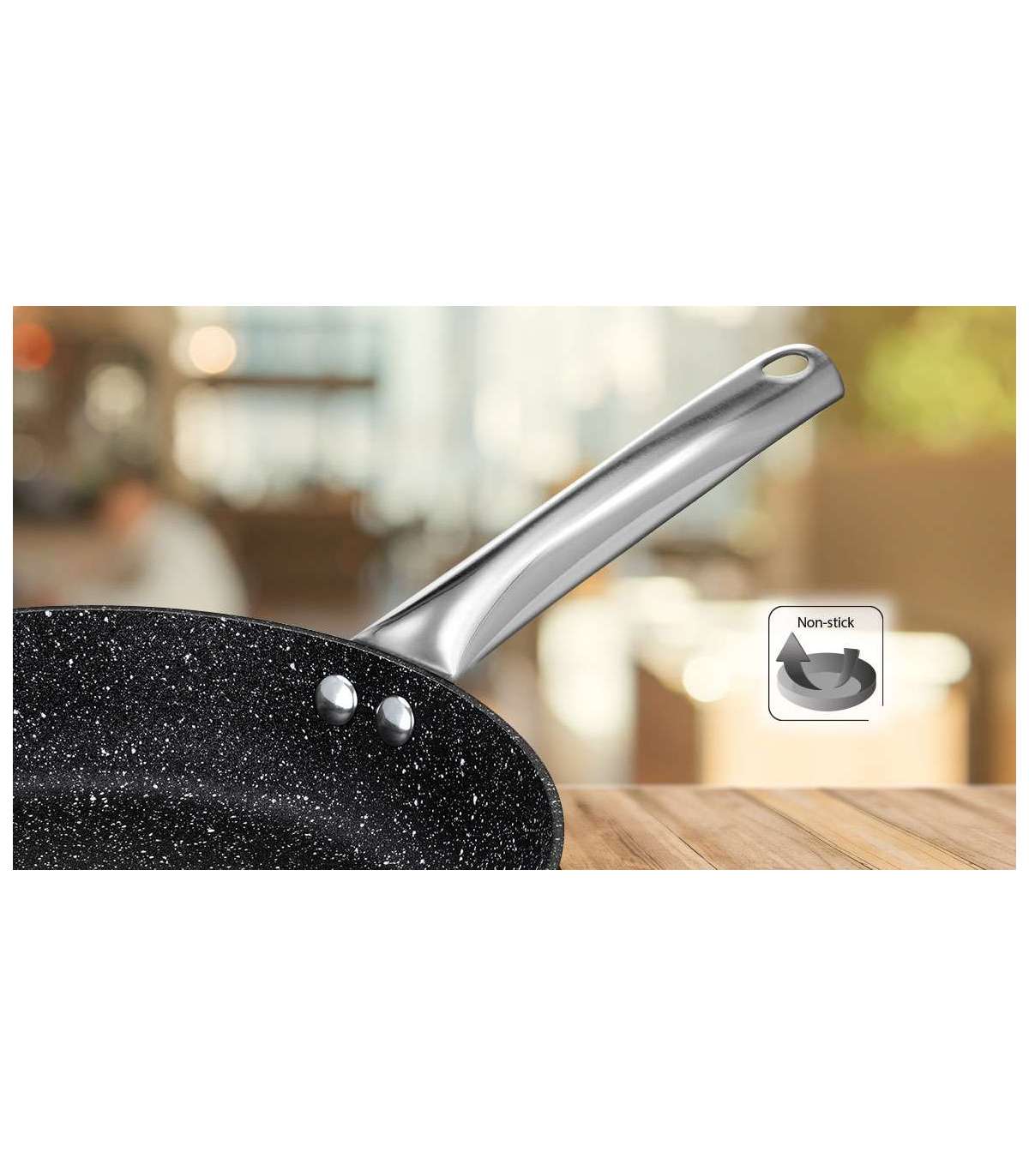 Sobib igat tüüpi pliitidele: gaasi-, elektri-, keraamilisele või induktsioonpliidile. Paks põhi jaotab kuumuse ühtlaselt. Tugevdatud mineraalosakestega 3-kihiline mittenakkuv kate. Stabiilne roostevabast terasest käepide.