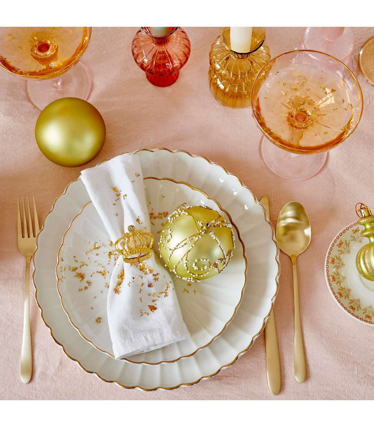 Taldrik. Läikiv, kuldse äärega. Materjal: portselan. Mõõdud on D26,6xH3,3cm. Ei sobi kasutamiseks mikrolaineahjus ja nõudepesumasinas.