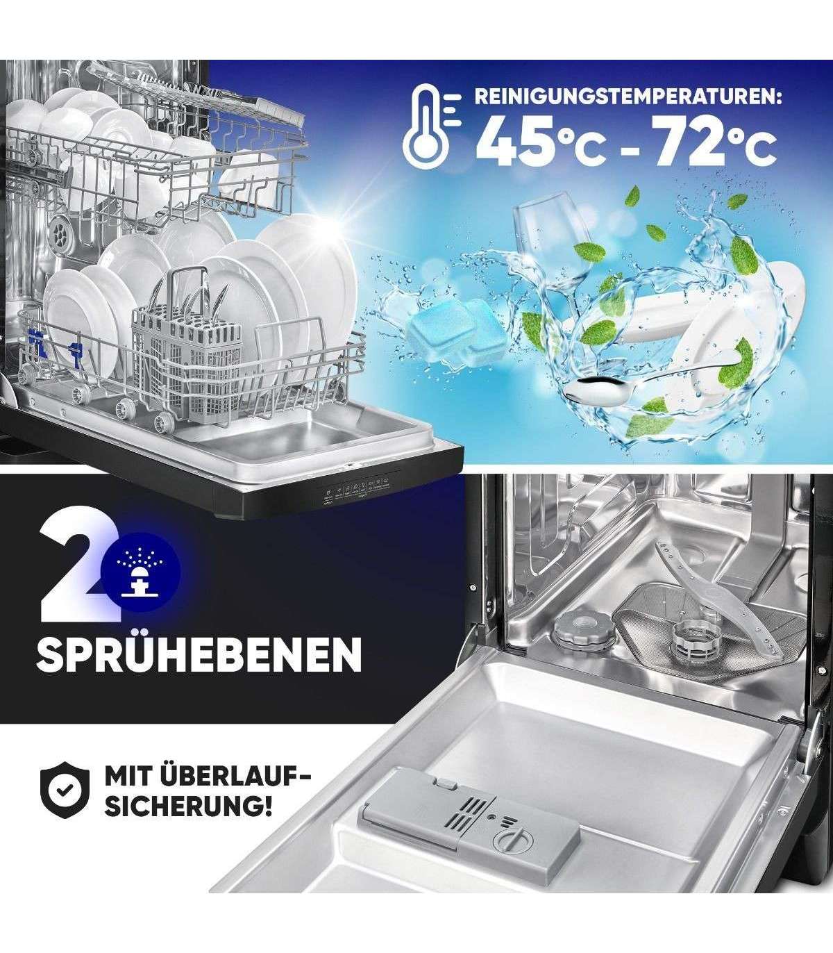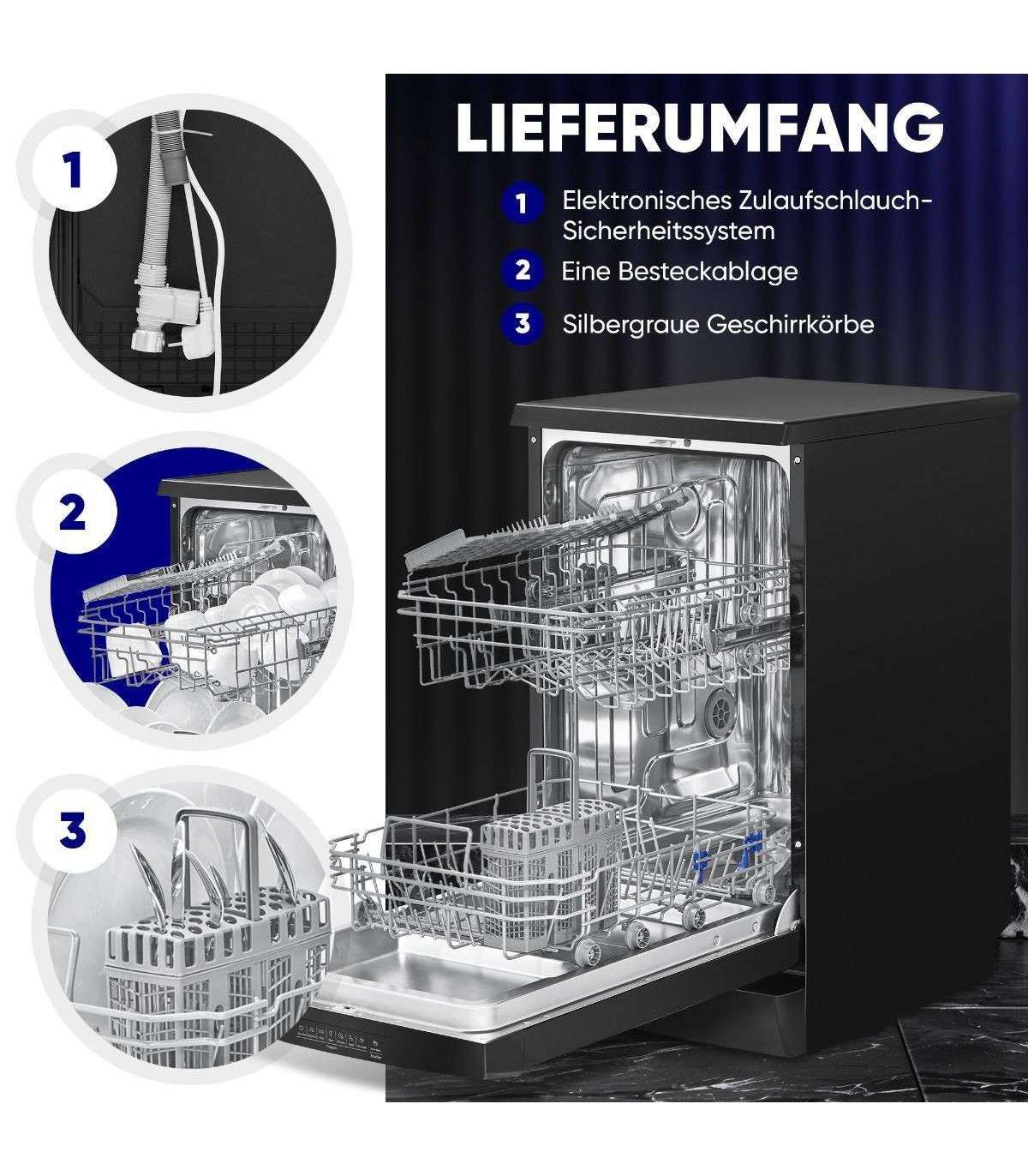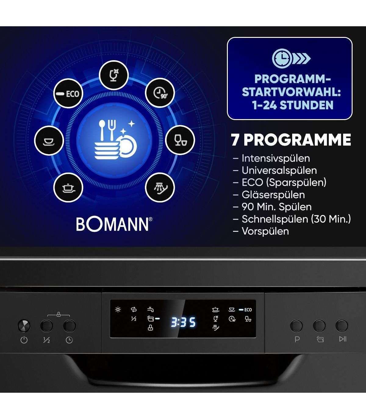 The 45 cm freestanding dishwasher from Bomann impresses not only with its technical specifications, but also with its practical functions such as the remaining running time indicator, the salt and rinse aid shortage indicator, and the automatic door opening function after the end of the program. With an operating noise of just 47 dB, it is also particularly quiet and does not disturb your everyday life.