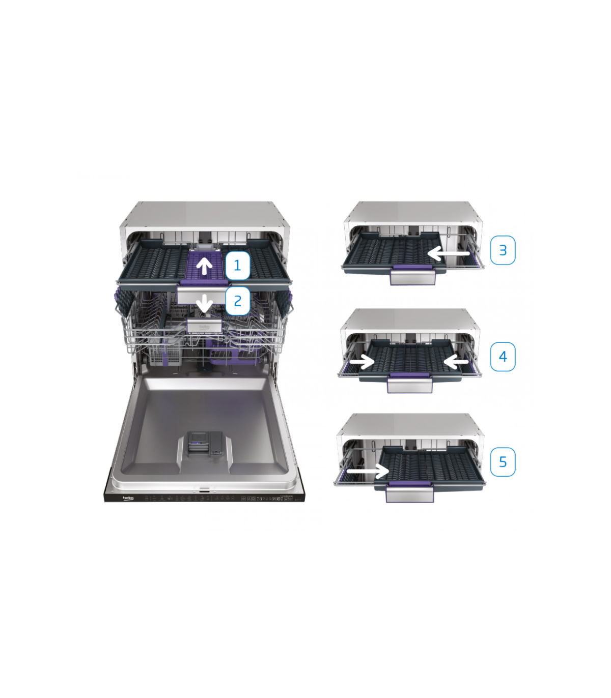 The Acrobat system allows you to adjust the upper basket of the dishwasher even when it is already full.