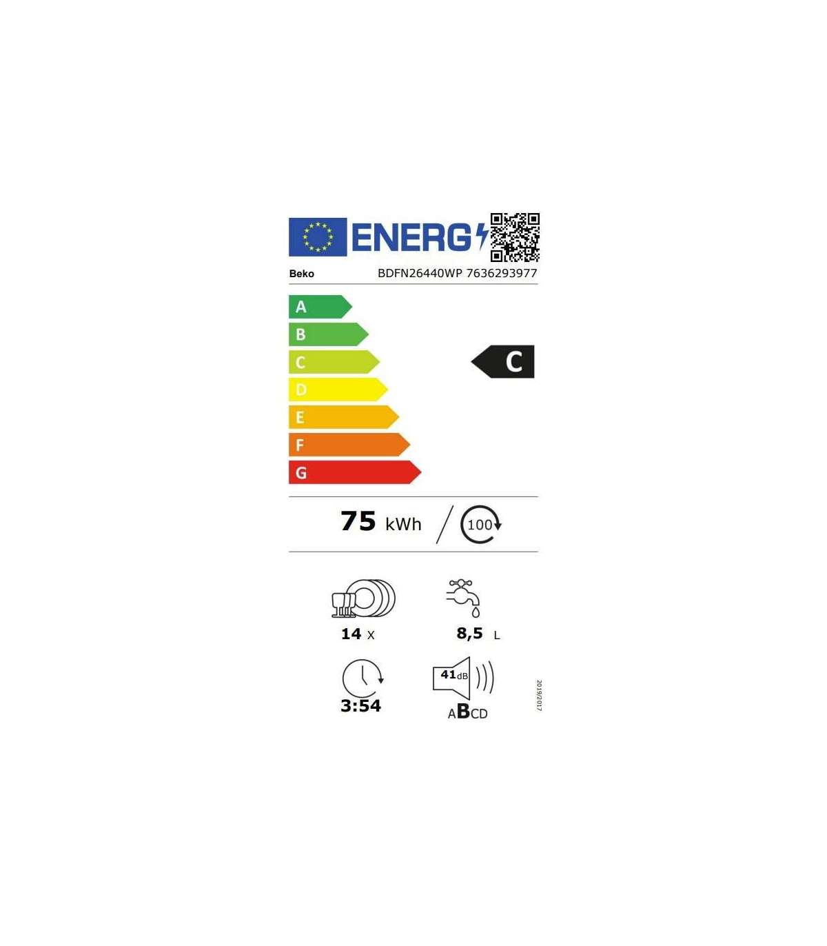 - Energy consumption, kWh per 100 cycles
