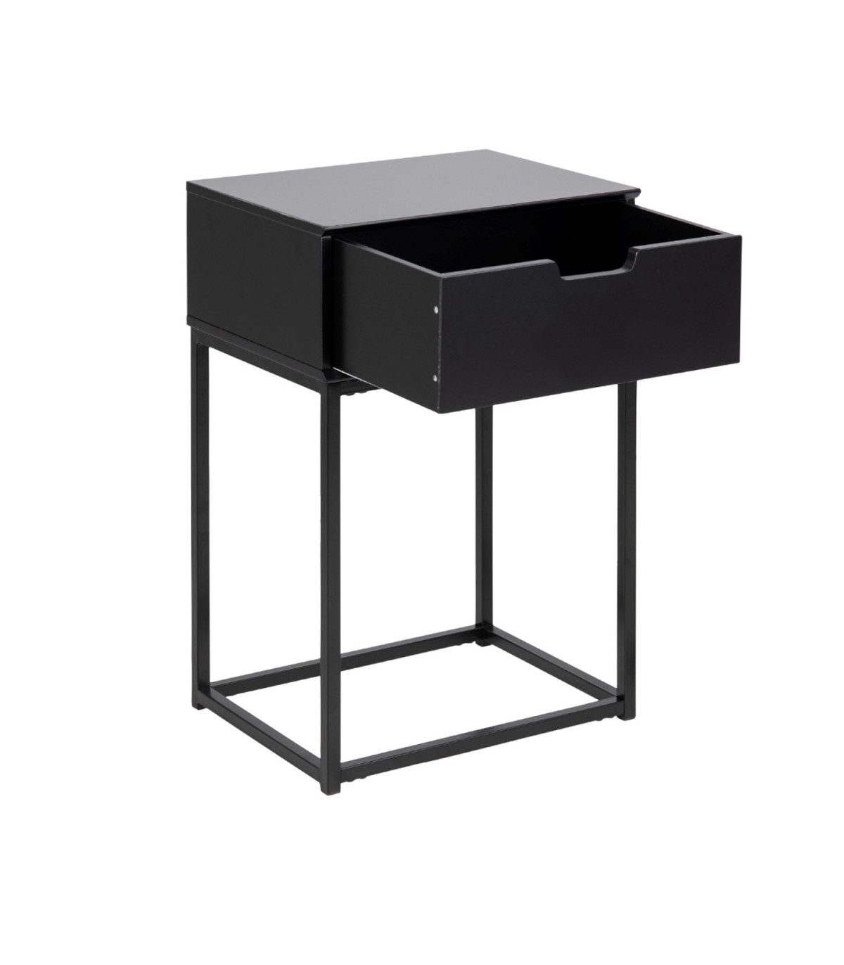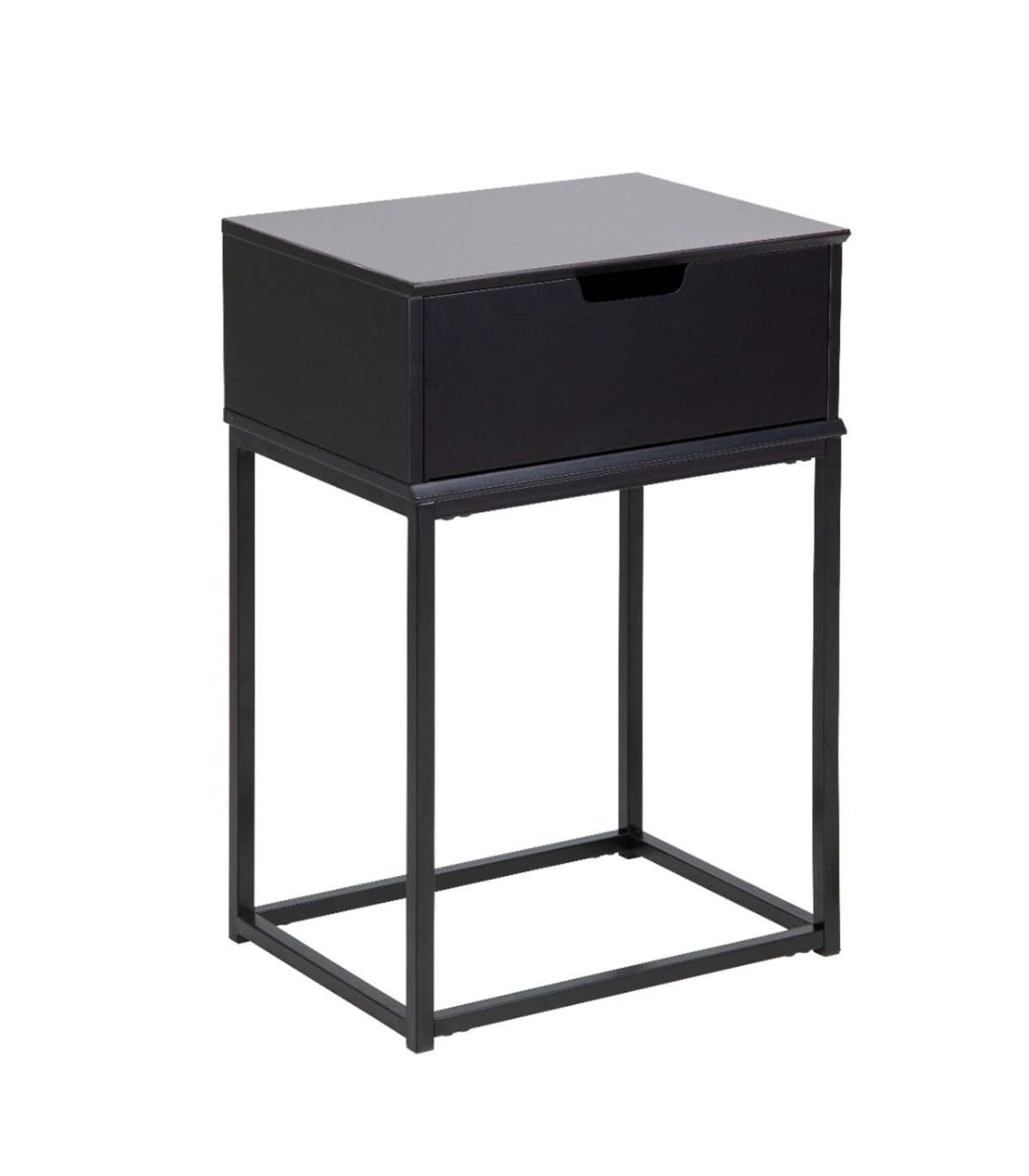 Прикроватная тумбочка MITRA 40x30xH61,5см. МДФ черный, лакированный, ящик, металлические ножки с порошковым покрытием, черный.