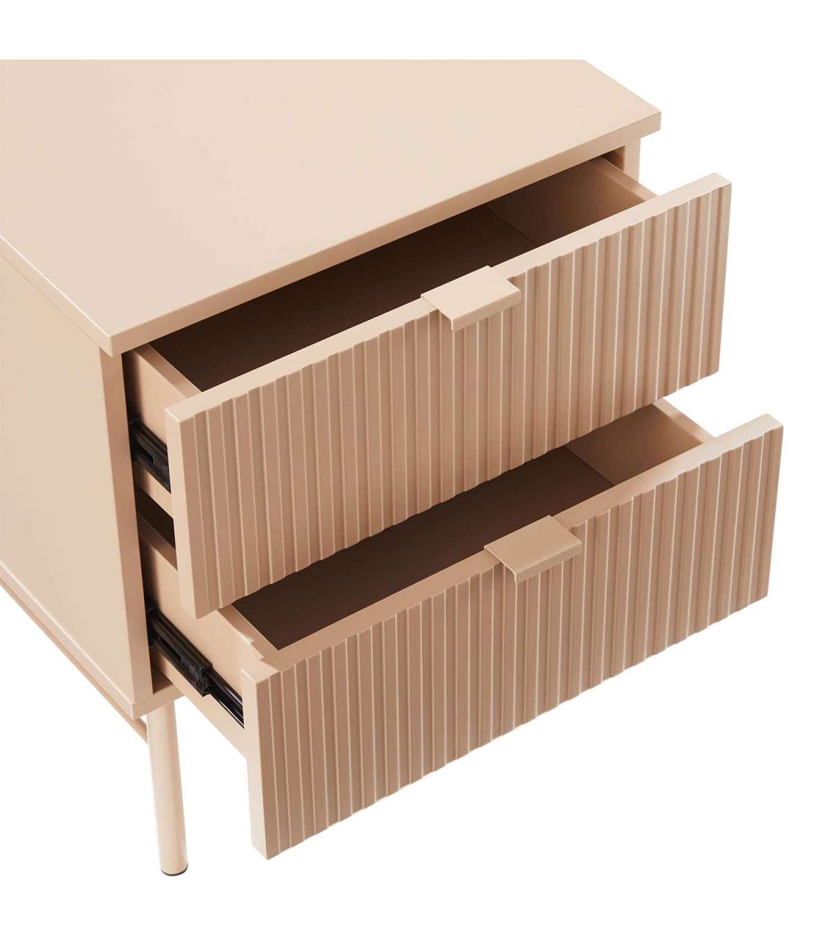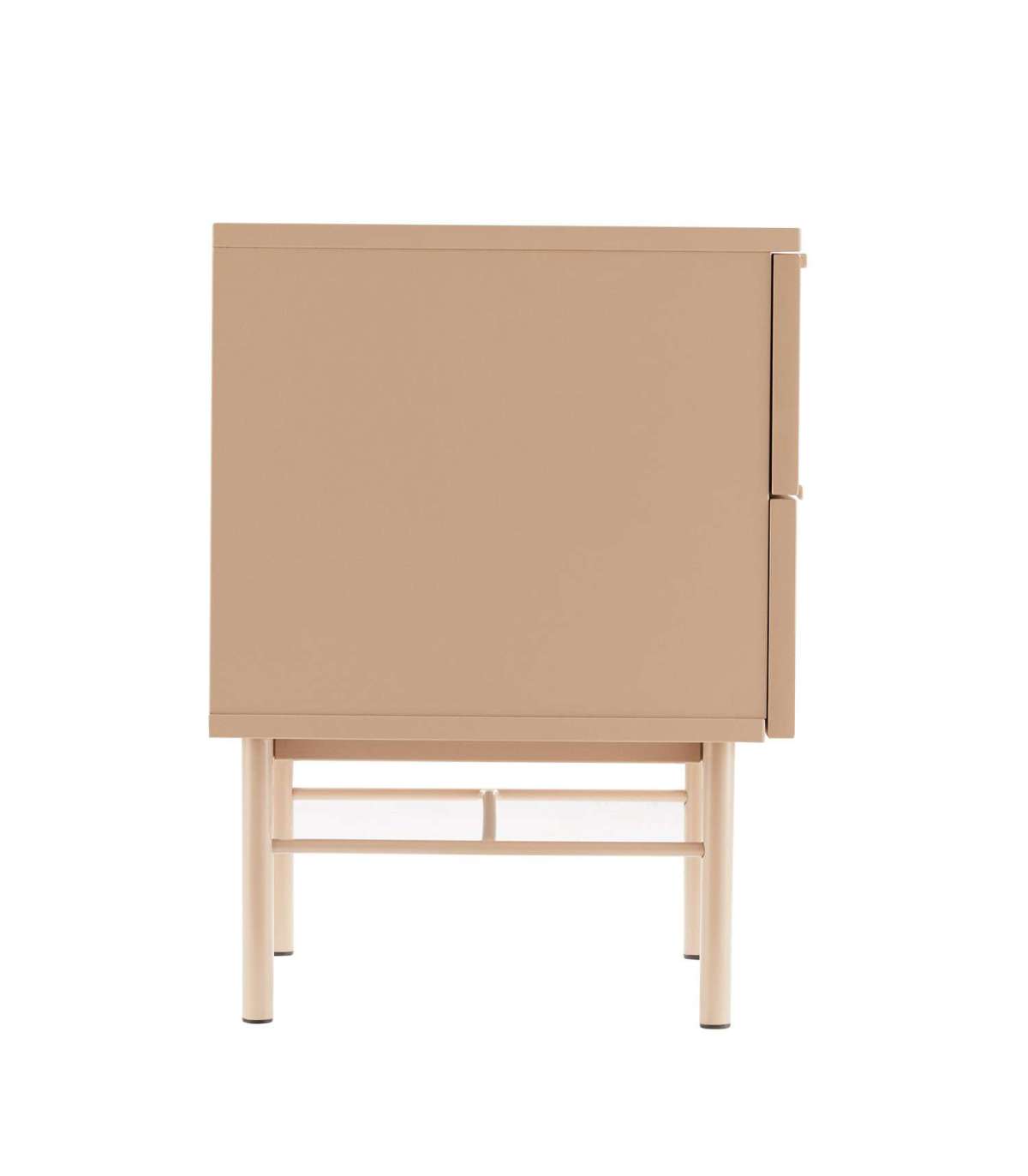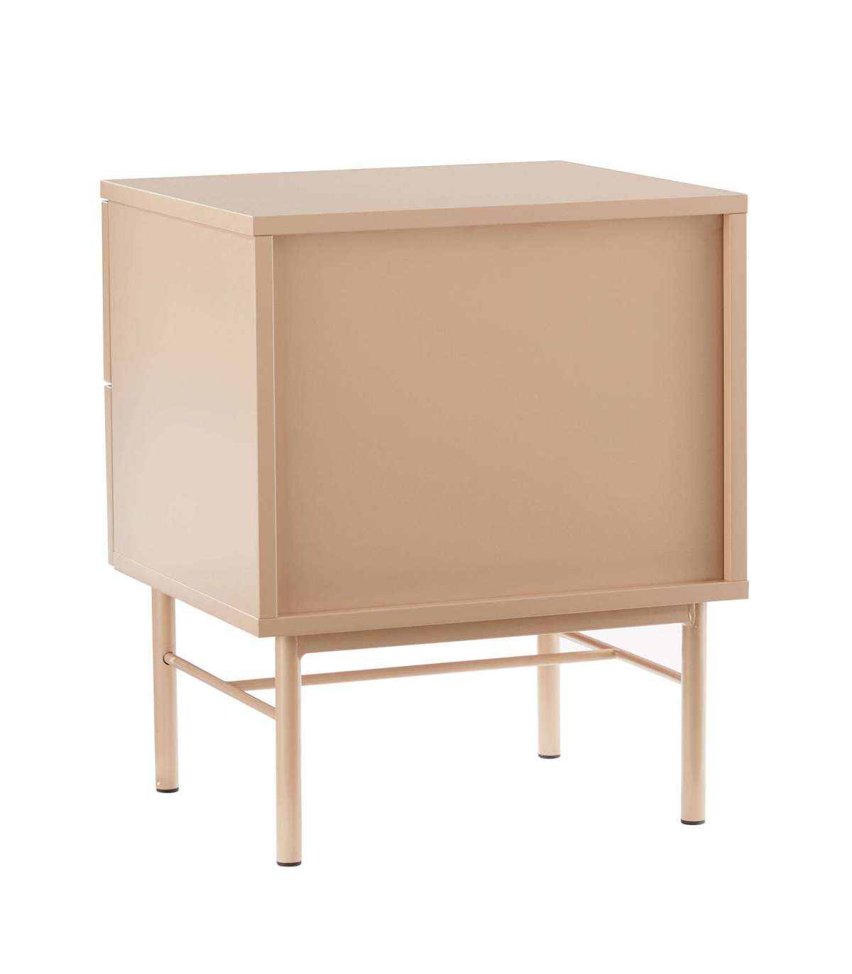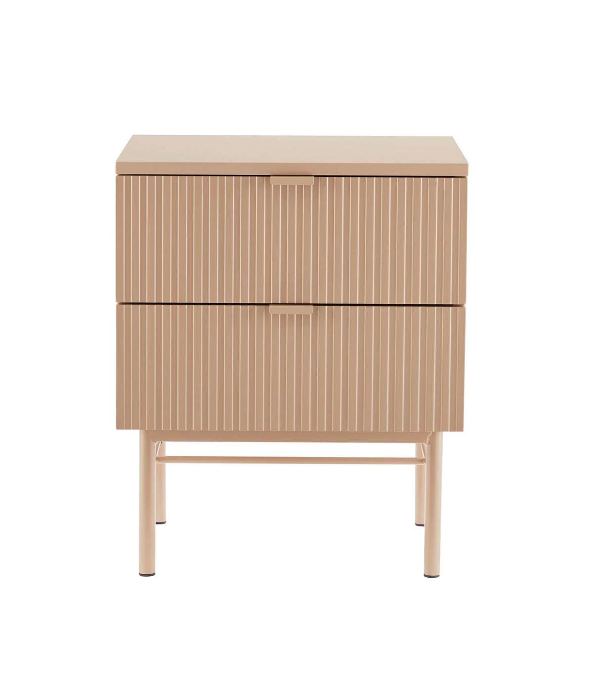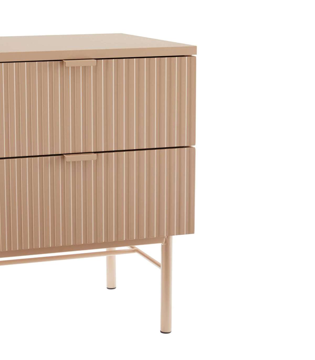 Öökapp SEQUENCE 2-sahtliga 45x40xH55cm, cappuccino. Öökapi korpus on valmistatud MDF plaadist. Reljeefse pinnaga triibulised sahtli esipaneelid annavad kapile omanäolise ja trendika välimuse. Sahtlid liiguvad metallsiinidel. Öökapp on viimistletud vastupidava polüuretaanvärviga. Metallist alusraam ja jalad on viimistletud pulbervärviga.
