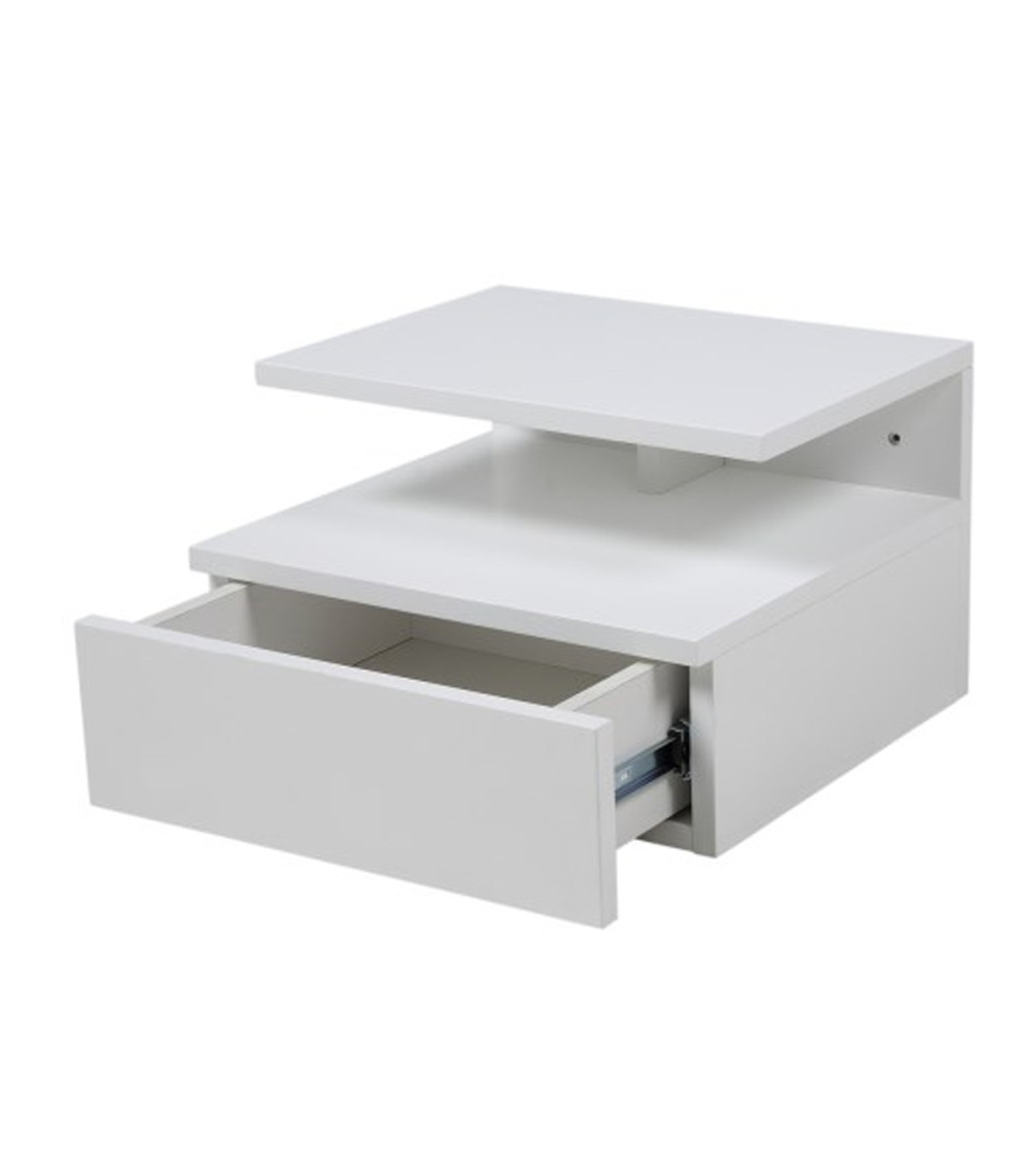 Прикроватная тумба ASHLAN 35x32xH22,5см, ярусная и с ящиком, настенные крепления, материал: дерево, цвет: белый