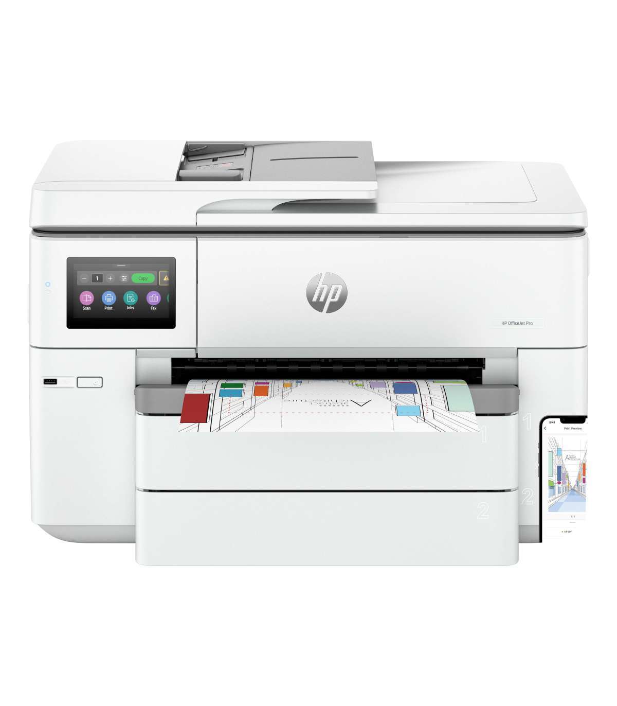 HP OfficeJet Pro 9730e HP+ Wide Format AiO All-in-One Printer - A3/A4 Color Ink, Print/Copy/Scan, Automatic Document Feeder, Auto-Duplex, Two Trays, LAN, Wifi, 22ppm, 250-1500 pages per month (replaces OfficeJet Pro 7740)