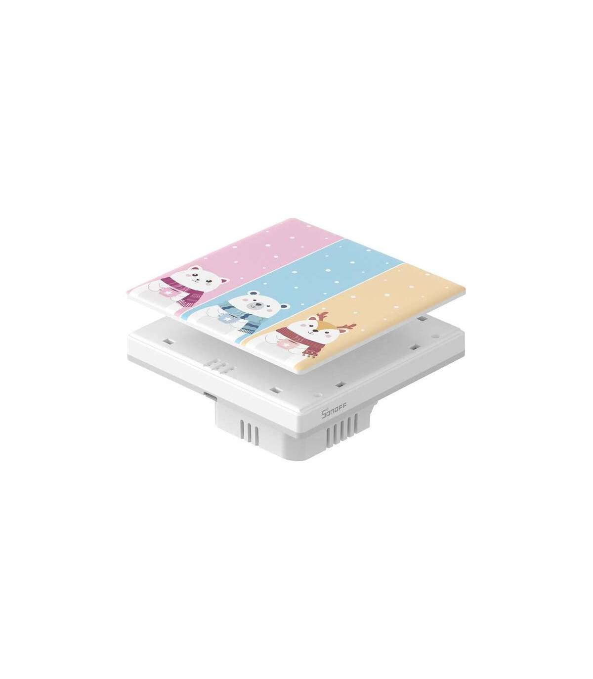 SONOFF Cartoon 3C is a stylish cover designed specifically for the SONOFF T5 3C touch wall switch. With its help you can personalize the device and adjust its appearance to your preferences! Mounted cap does not affect the comfort of operation and allows you to comfortably use all the functions of the switch.