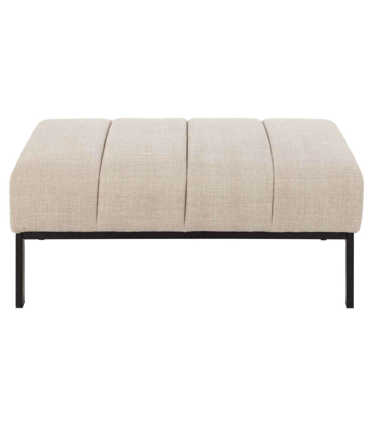 Kui soovite külalistele lisaistet pakkuda või elutuppa dekoratiivse elemendi lisada, on see mitmekülgne tumba ideaalne valik. Tumba lisab ruumi kaasaegset tunnetust. Iste on kaetud beeži kangaga, mida täiendavad vertikaalsed õmblused. Tumbal on kontrastsed pulbervärvitud terasest jalad. Mõõdud on 100x61xH41cm. HOOLDUS: Hooldus piirdub tolmuimemise ja plekieemaldusega. Plekkide eemaldamisel tuleb olla ettevaatlik. Katsetage plekieemaldajaid esmalt vähem nähtaval alal. Ärge kunagi kasutage lahusteid. Ärge asetage mööblit otsese päikesevalguse kätte. Alus: Kasutage igapäevaseks puhastamiseks seebiveest kuivaks väänatud lappi. Rooste vältimiseks pühkige pind kuivaks. Ärge hõõruge pinda kõvade esemetega.