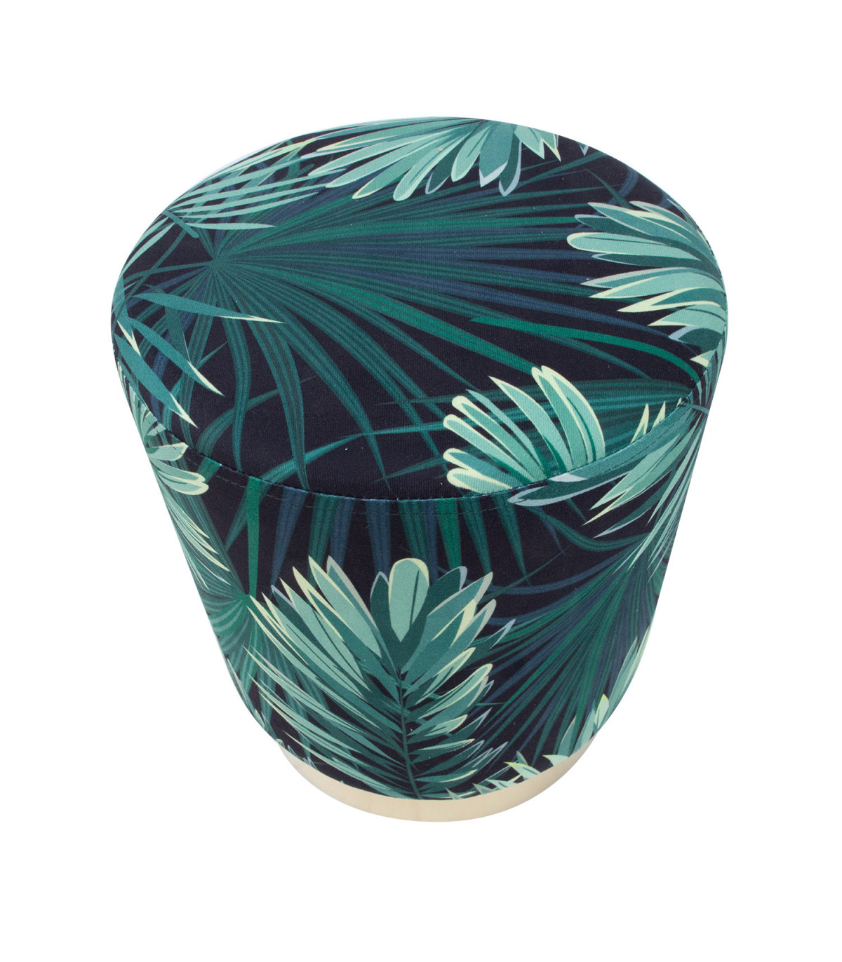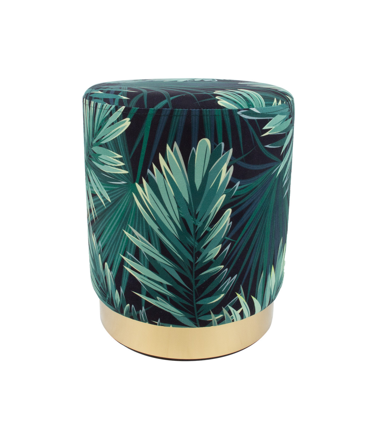 Пуфик LA PERLA, D35xH42см, ткань: бархат, цвет: зеленые листья