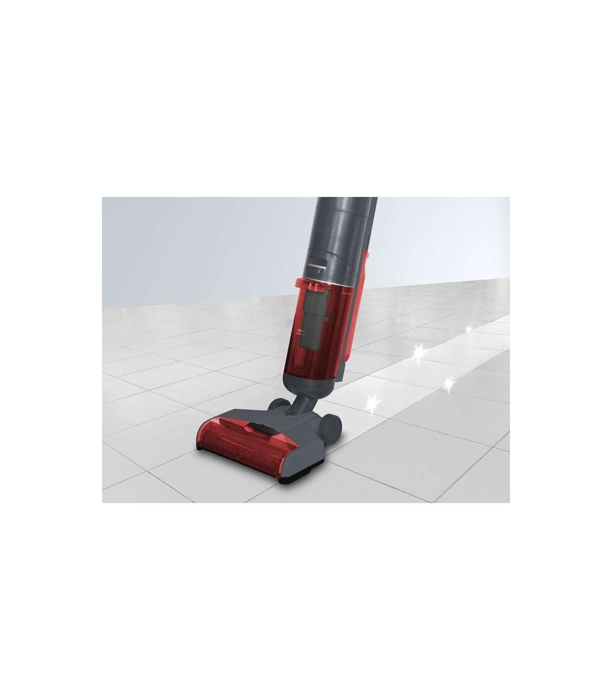 Аккумуляторный пылесос легко и быстро убирает с пола любые виды грязи, как жидкие, так и твердые. Одновременно пылесосит и моет полы. Можно использовать с любым моющим средством для пола, разбавленным водой. Практичный светодиодный дисплей с индикацией оставшегося заряда аккумулятора и 2 выбираемыми скоростями.  Щеточный валик для сбора грязи с полов и ковров. Оснащен двумя большими резервуарами: резервуар для грязной воды объемом 1,2 л и резервуар для чистой воды объемом 680 мл.