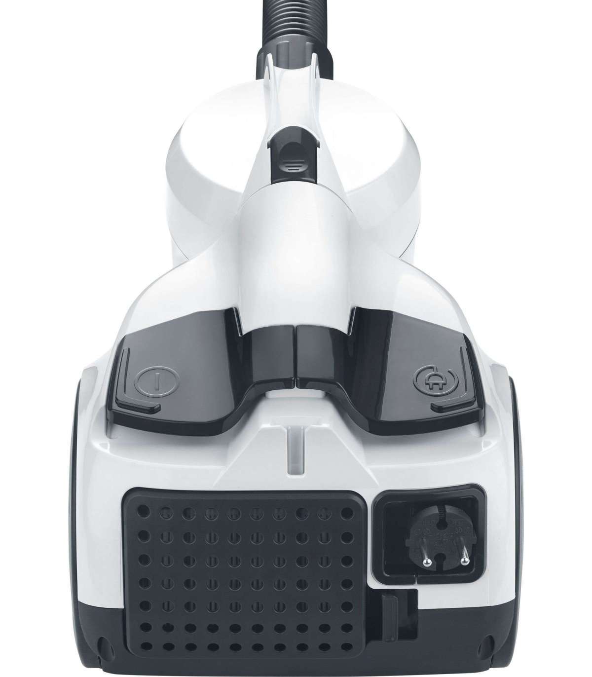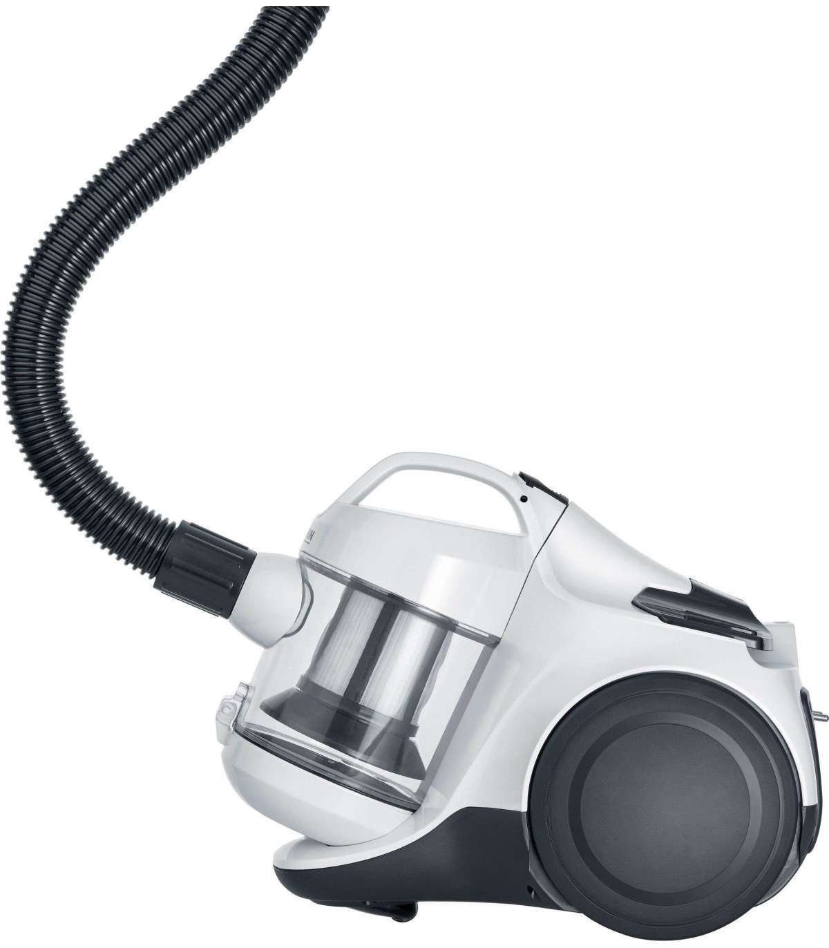 Мощная циклонная технология без мешка для твердых полов и ковров, большой объем контейнера 1,5 л и отсутствие дополнительных затрат на мешки для пыли.