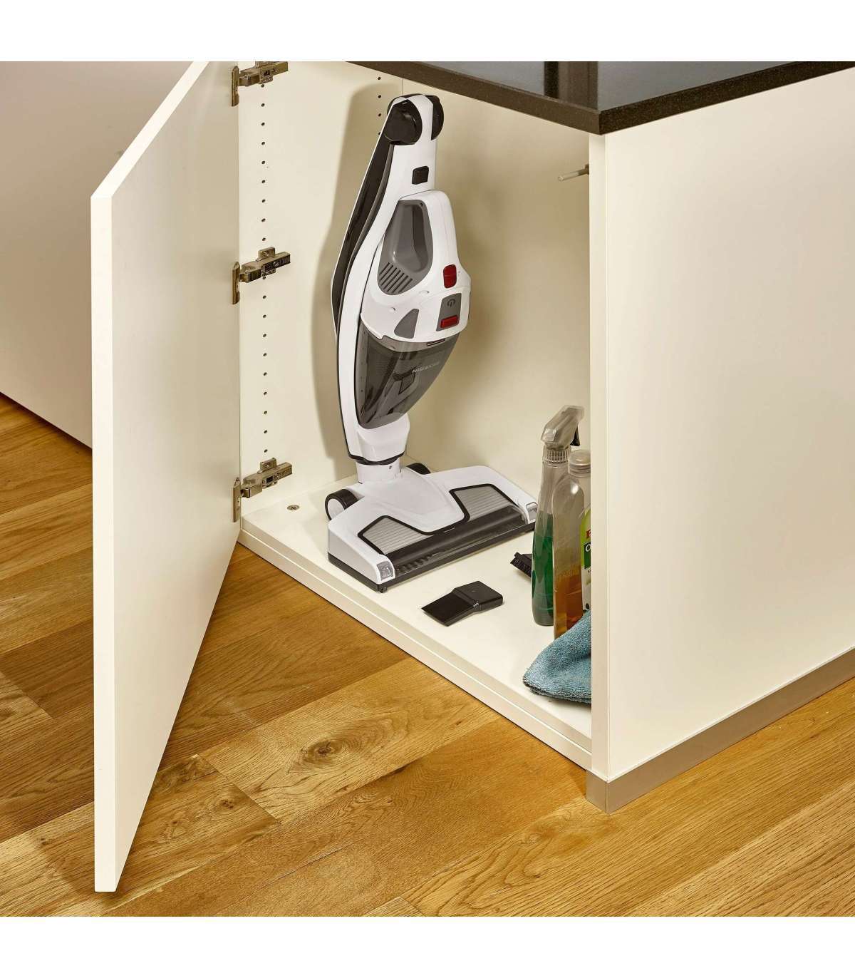 Складная ручка облегчает доступ к глубоким местам и экономит место.