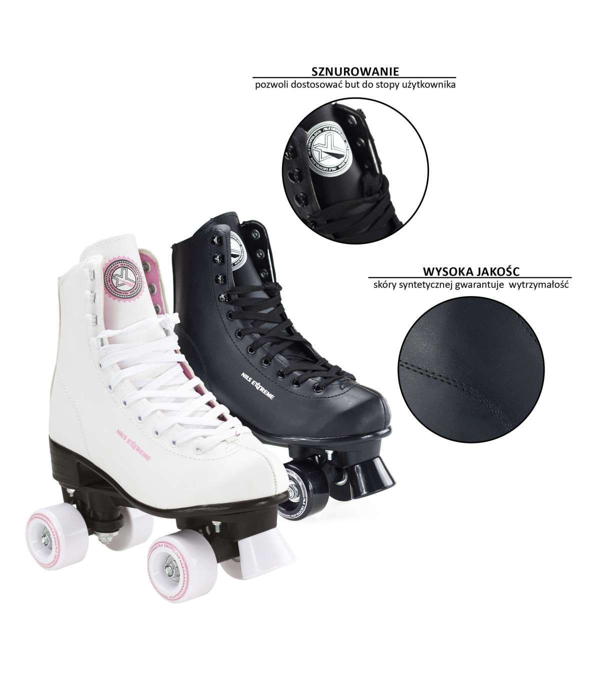 NQ8400 Nils Extreme роликовые коньки в белой расцветке, предназначенные для прогулочного катания. Они выполнены из высококачественной синтетической кожи, обеспечивающей долговечность при длительной эксплуатации. Шнуровка позволяет подогнать ботинок под ногу каждого пользователя, а тормоза обеспечивают максимальную безопасность при езде. Ролики NQ8400 Nils Extereme доступны в двух вариантах - в черном и белом цвете.