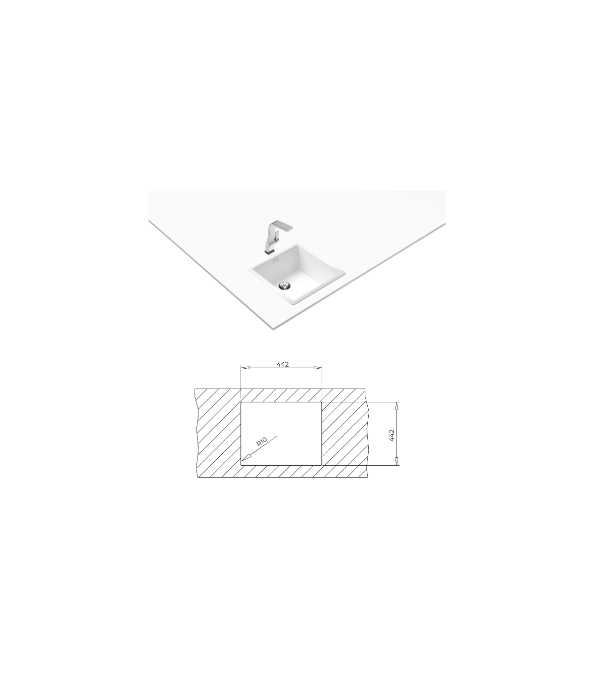 - Undermount installation