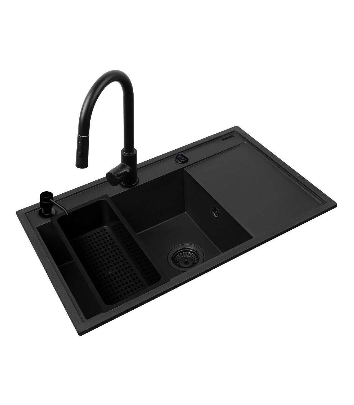 Set - PYRAMIS CAMEA (79X50) 1B 1D L sink + IDEA BLACK EDITION mixer tap - 070168402BE - Volcano