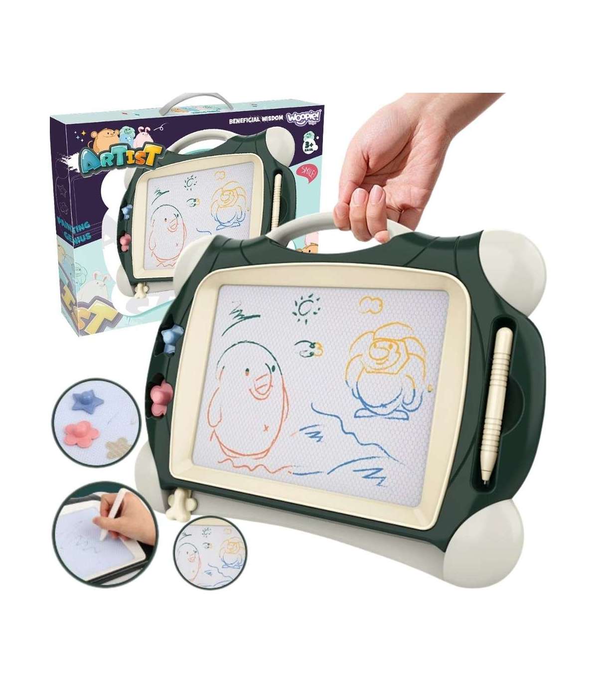 WOOPIE Znikopis Tablica Magnetyczna Kolorowa + 2 Stempelki Zielony