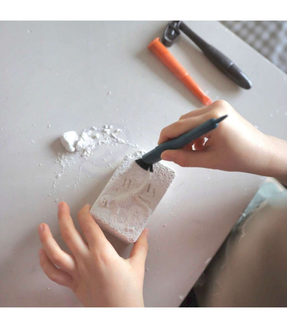 - Po odkryciu szkieletu dinozaura bądź ostrożny! Używaj delikatnie dłuta oraz pędzelka aby nie uszkodzić znaleziska