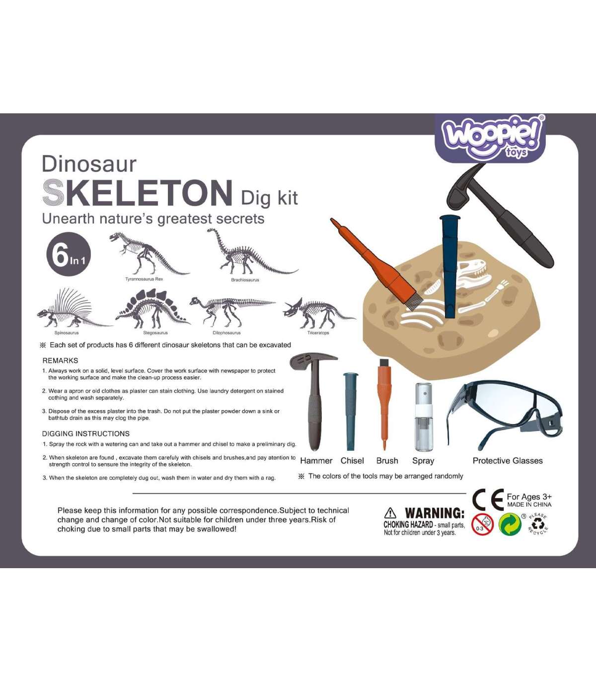 WOOPIE Wykopalisko "Mały Archeolog" 6 Szkieletów Dinozaurów