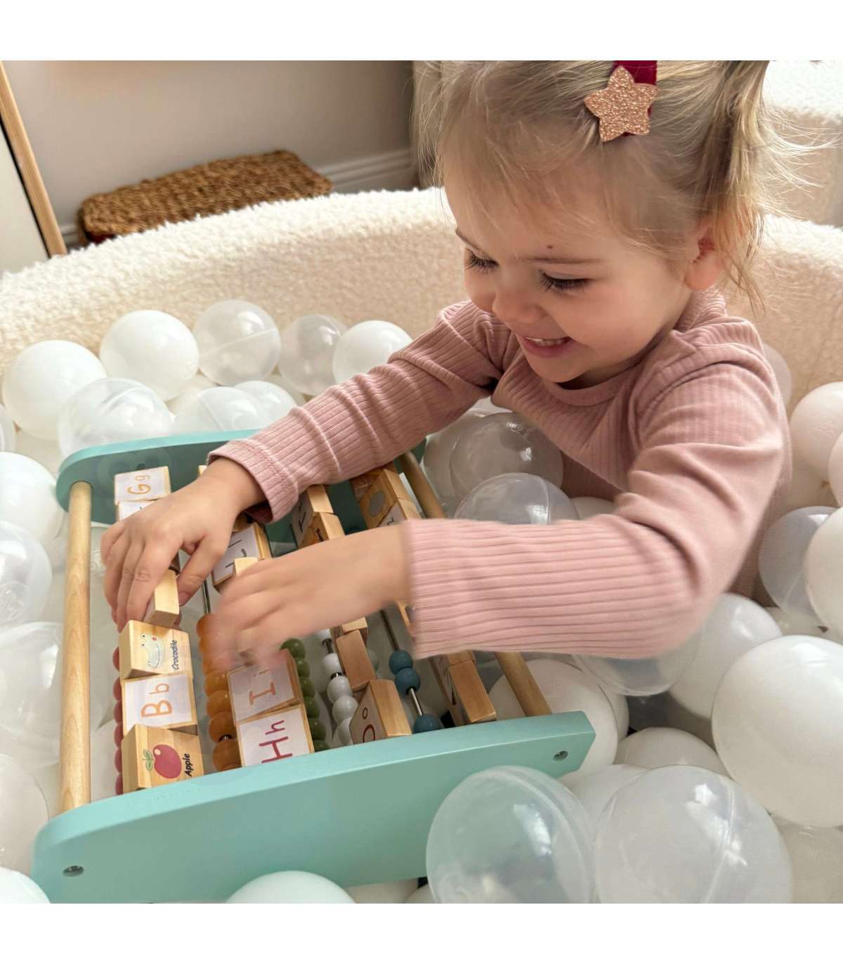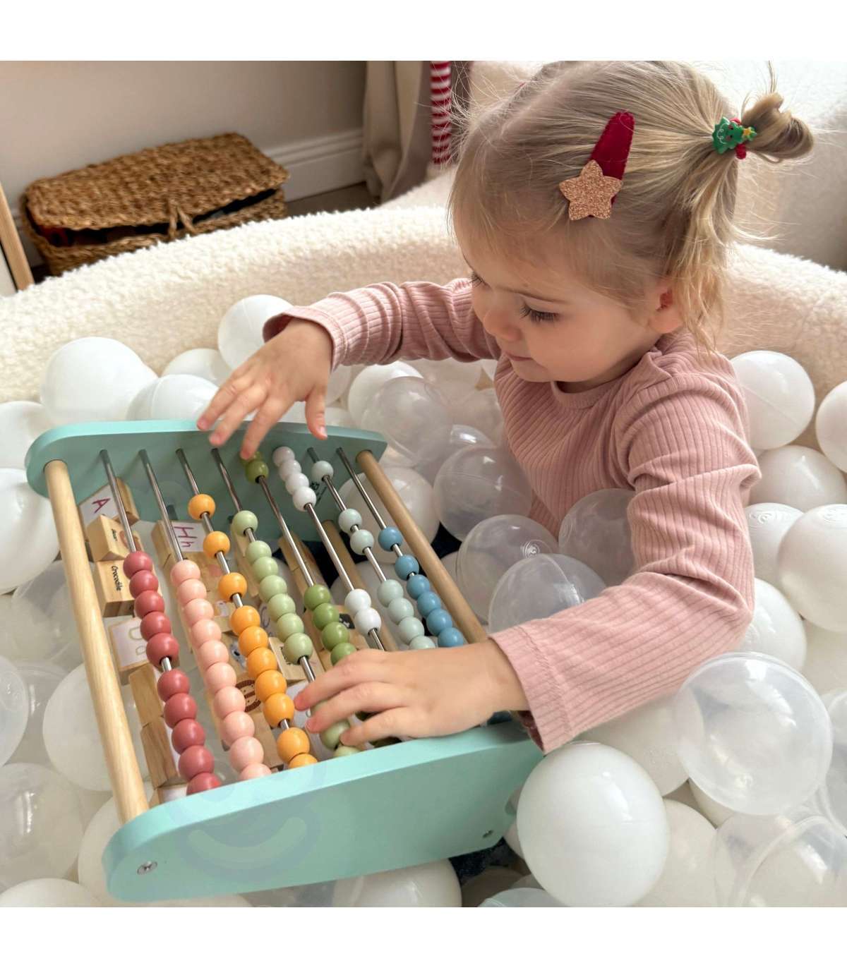 Dwustronne liczydło od Tooky Toy to urzekająca zabawka edukacyjna, stworzona, by inspirować młode umysły do nauki i odkrywania świata. Wykonane z niezwykłą precyzją i starannością, w pięknych pastelowych odcieniach. Zapewnia podwójną dawkę zabawy oraz możliwości nauki.