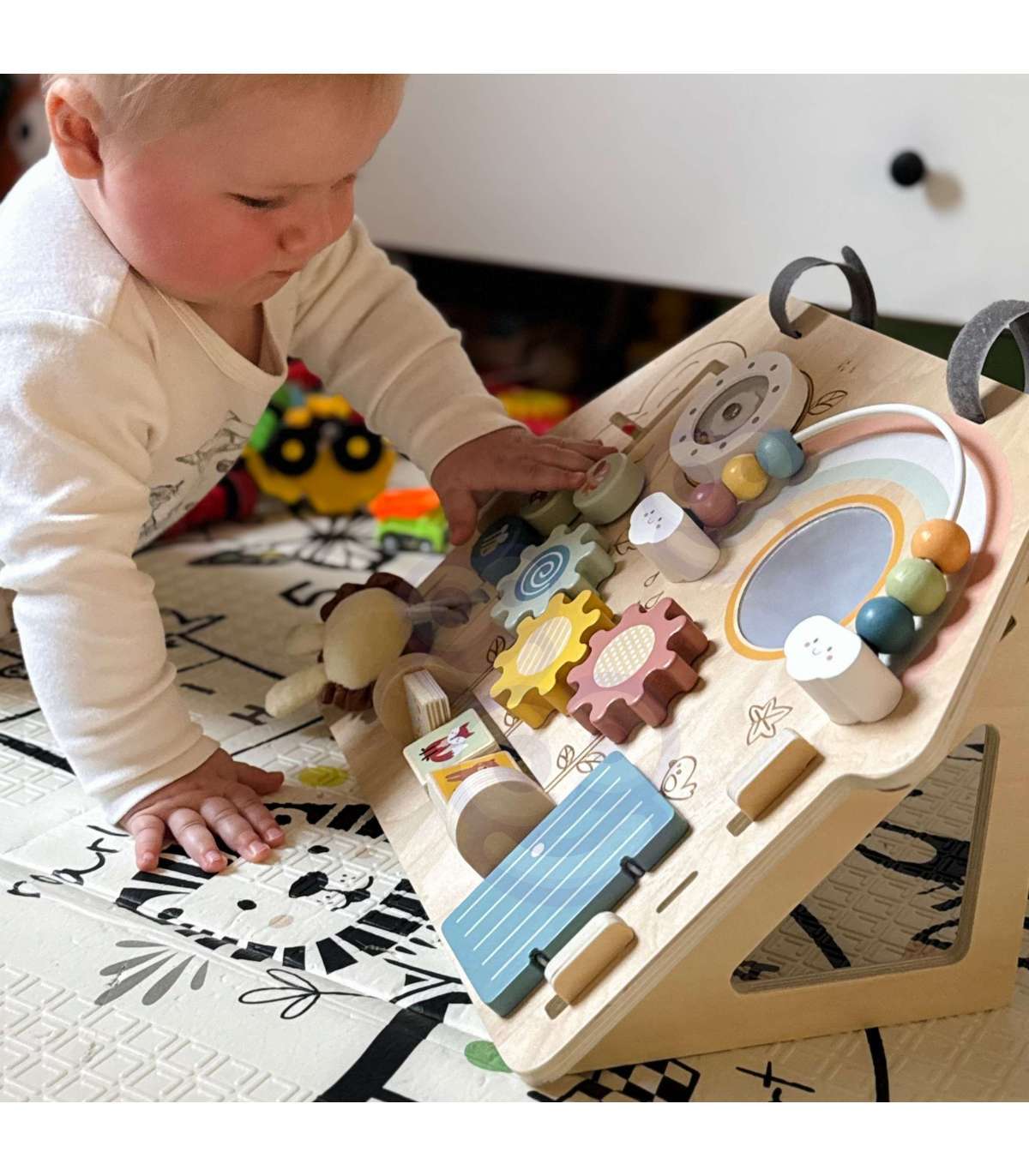 Drewniana tablica manipulacyjna „Domek” – edukacyjna zabawa dla malucha!