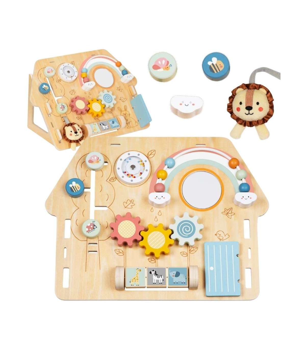 TOOKY TOY Duża Drewniana Tablica Manipulacyjna Domek - Centrum Aktywności