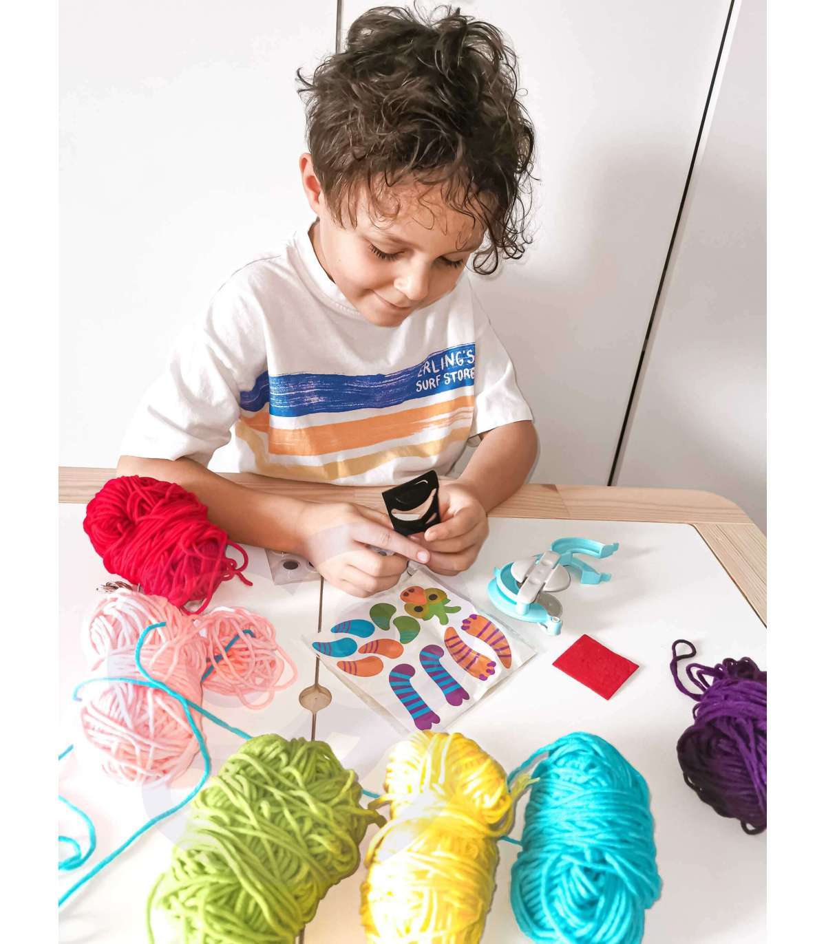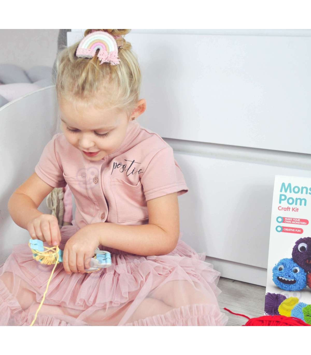Zestaw Kreatywny Monster Pom od marki WOOPIE z serii ART&FUN dostarczy straszliwą ilość kreatywnej zabawy! Zrób swojego własnego potwora! Ogranicza Cię jedynie Twoja własna wyobraźnia! Zestaw pozwala na stworzenie dowolnego kudłatego potworka za pomocą m.in. specjalnego sprzętu i włóczki oraz zawiera dodatki takie jak oczy czy rogi. Dodatkowo zawiera na 3 kartach aż 21 filcowych elementów (usta, zęby itp.), z których możesz stworzyć niepowtarzalną minę. Żadne dziecko nie powinno mieć problemu ze stworzeniem swojego potworka, ponieważ z tyłu opakowania jest zawarta obrazkowa instrukcja tworzenia. W skrócie zawijamy oba ramiona sprzętu włóczką, następnie przecinamy, wiążemy sznurkiem przez środek, ściągamy sprzęt i mamy gotowe ciało naszego potworka. Następnie dekorujemy potwora i gotowe. przecinamy Zabawy plastyczne dodatkowo rozwijają zdolności manualne u dzieci tzw. "małą motorykę". Zestaw jest świetnym pomysłem na zabawę w gronie przyjaciół - stworzenie własnych potworków oraz ich historię w zabawie!