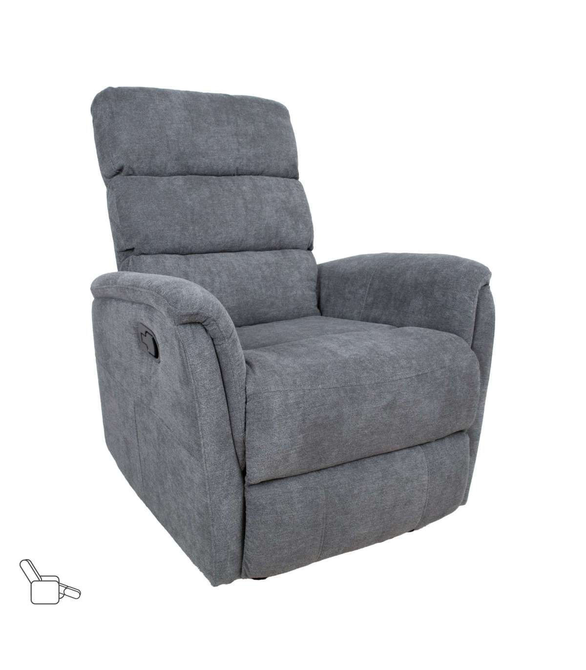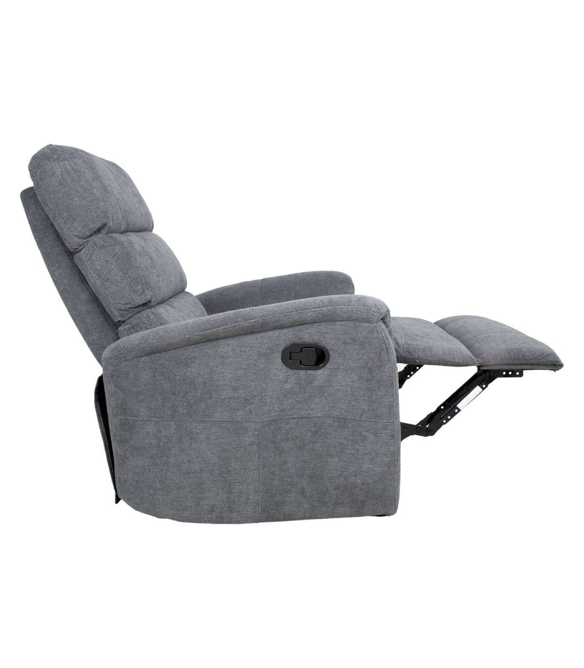 Кресло-реклайнер BARCLAY с ручным механизмом 79x86xH105см, цвет серый. Положение подножки можно изменить с помощью ручного механизма. Чтобы поднять подставку для ног, потяните вверх рычаг справа снаружи кресла. При нажатии на подставку для ног она автоматически фиксируется в исходном положении. Материал покрытия: 100% полиэстер, Мартиндейл от 10 000 до 15 000. Каркас: дерево, металл. Обивка: пенополиуретан 20-24кг/м?. Габаритные размеры кресла 79x86xH105см. Ширина сиденья 52 см, глубина сиденья 54 см, высота сиденья 48 см. Высота спинки 69см. Высота подлокотника от земли 63см.