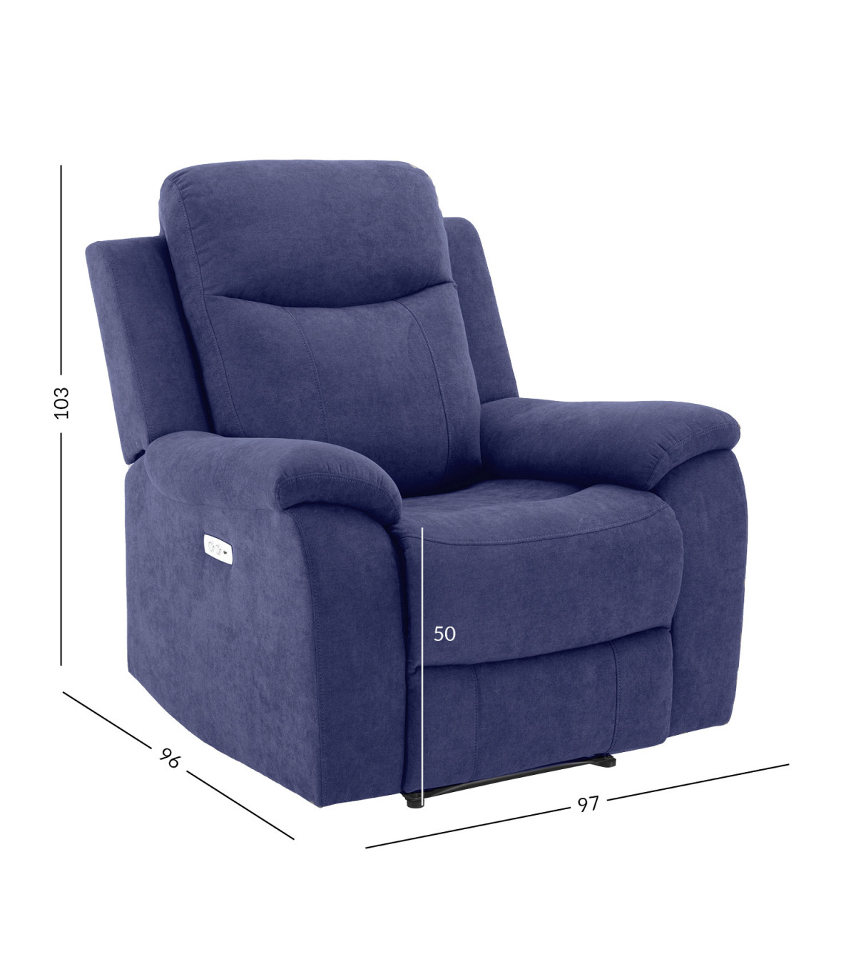 Кресло-реклайнер MILO 97x96xH103см, с электрическим механизмом, синий