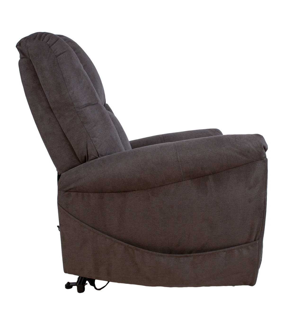 Кресло-реклайнер с функцией массажа. Положение спинки и подставки для ног можно изменить с помощью электрического механизма с дистанционным управлением. Когда подножка поднята, спинка плавно переходит в наклонное положение. Кресло оснащено подъемным механизмом, который отодвигает все кресло от его основания и помогает пользователю занять положение стоя или сидя, не напрягая бедра, спину или руки. Отличный подарок бабушке и дедушке! Материал покрытия: 100% полиэстер. Каркас и подвеска: дерево, фанера, металл. Обивка: пенополиуретан.