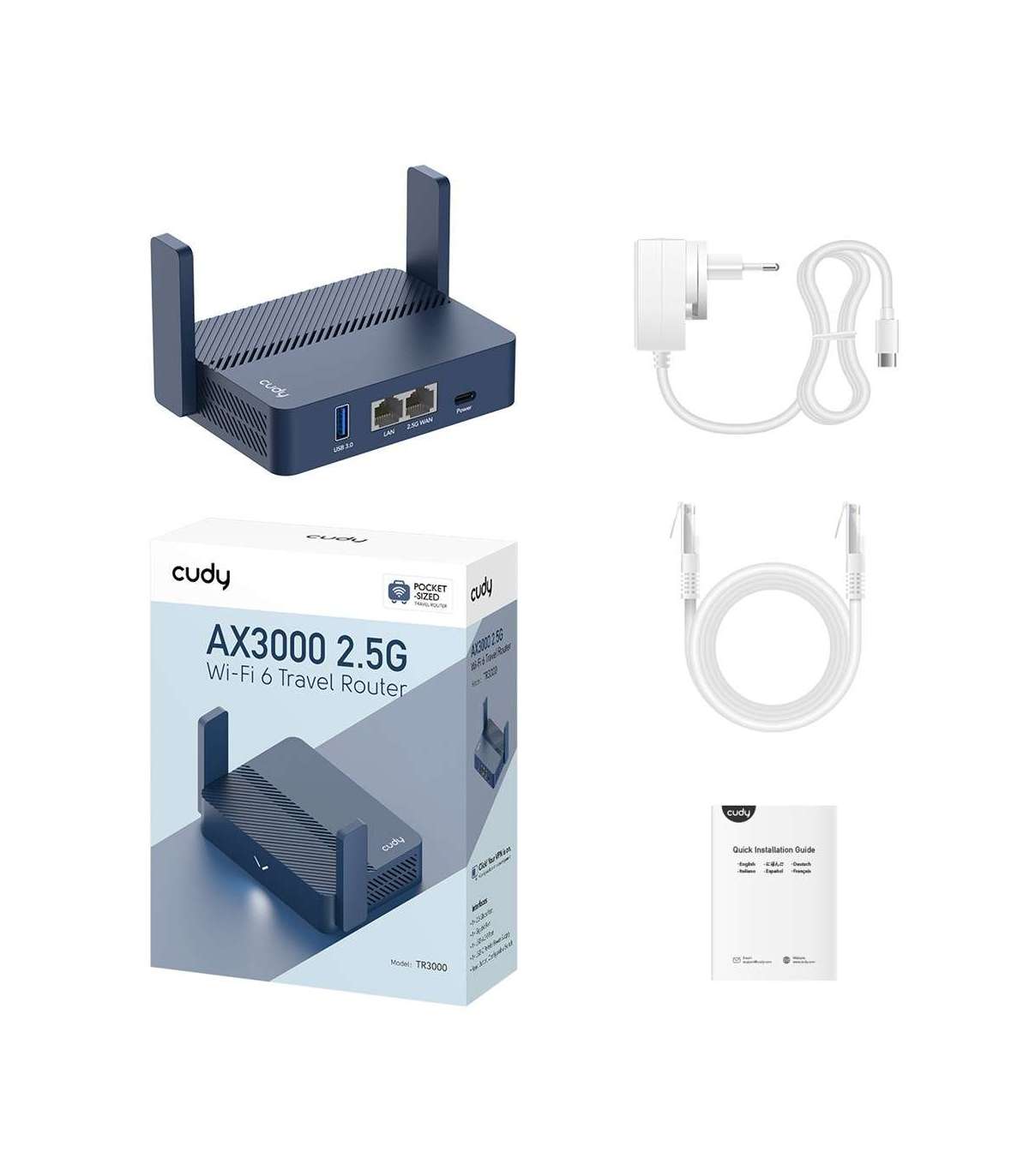 Cudy AX3000 wireless router Gigabit Ethernet Blue