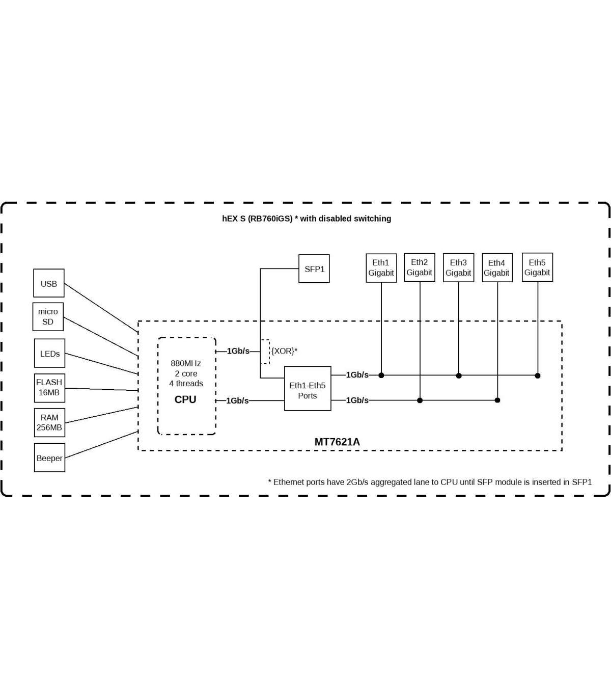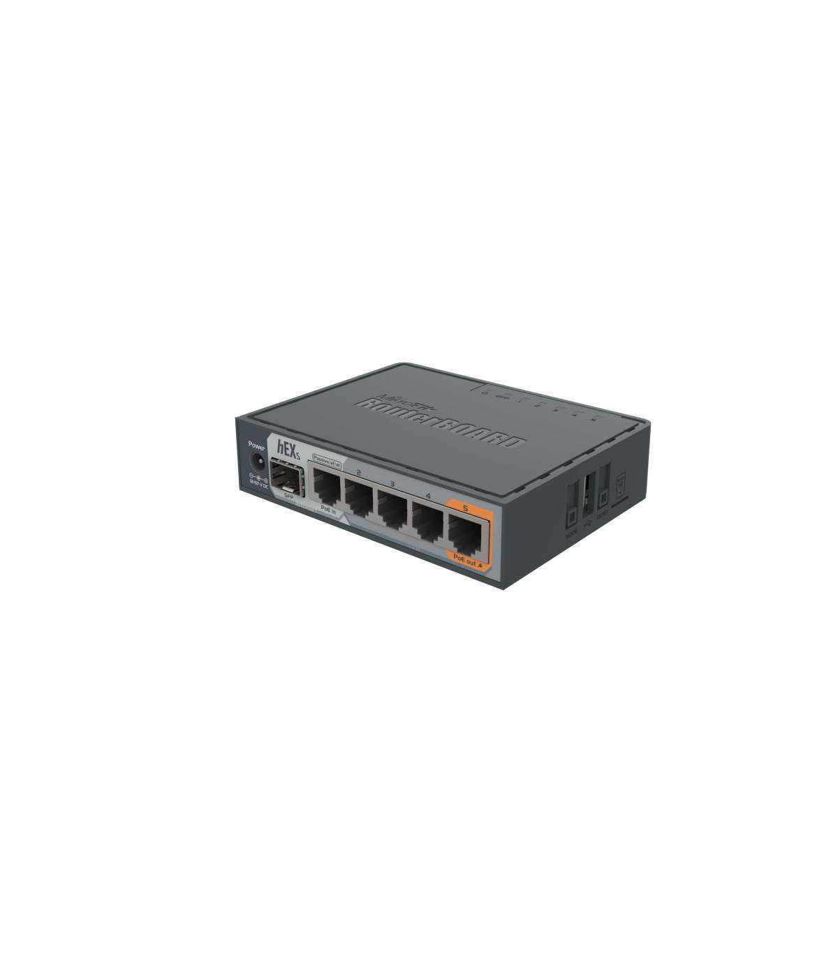 Mikrotik Wired Ethernet Router RB760iGS, hEX S, Dual Core 880MHz CPU, 256MB RAM, 16 MB (MicroSD), 5xGigabit LAN, 1xSFP, USB, IPsec hardware encryption support and The Dude server package, PCB temperature and Voltage Monitor, Beeper, RouterOS L4 | Enthernet Router hEX S | RB760iGS | No Wi-Fi | 10/100/1000 Mbit/s | Ethernet LAN (RJ-45) ports 5 | Mesh Support No | MU-MiMO No | No mobile broadband | Antenna type No antenna | 1 | 12 month(s)