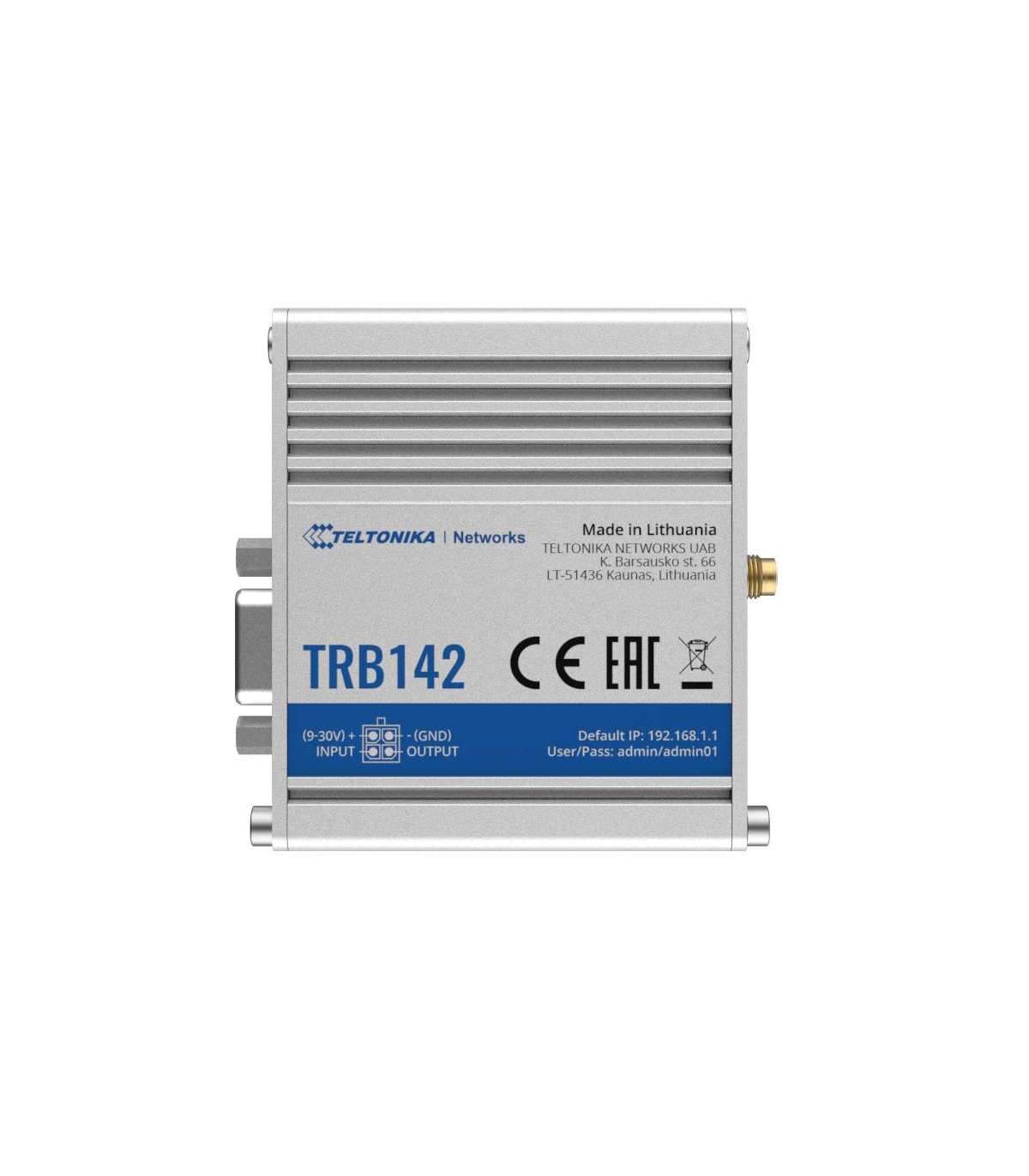 Teltonika TRB142003000 Gateway, 2G/3G/4G LTE (Cat 1), Equipped with RS232 for serial communication | LTE Gateway | TRB142 | No Wi-Fi | Ethernet LAN (RJ-45) ports 0 | Mesh Support No | MU-MiMO No | 2G/3G/4G | Antenna type 1 x SMA for LTE | 1 x Virtual network interface via micro USB